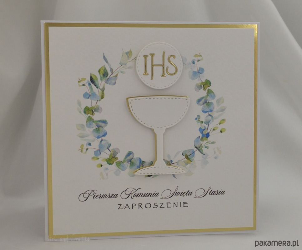 Delikatne i subtelne, ręcznie wykonane zaproszenia komunijne z pełną personalizacją.