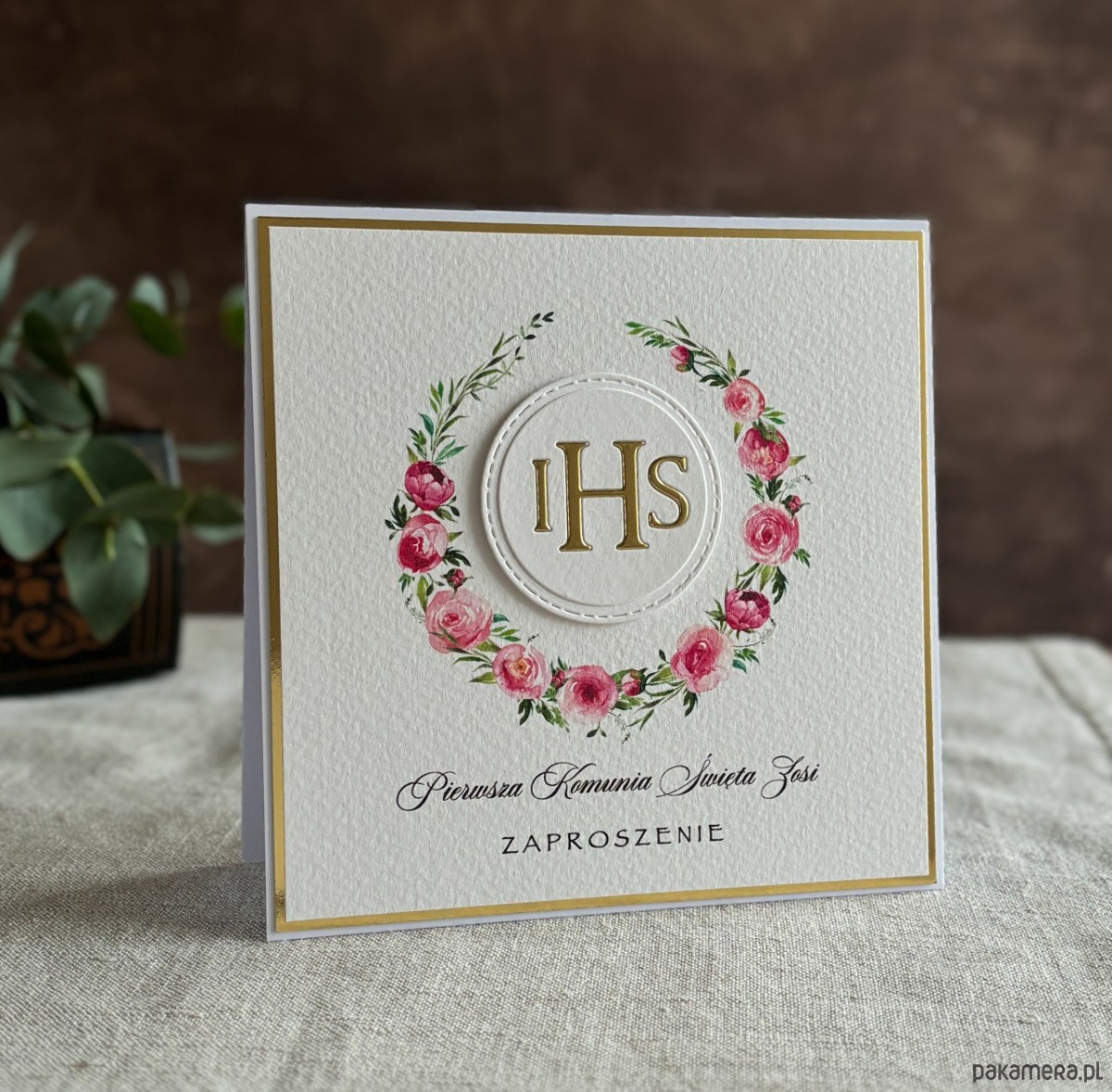 Eleganckie, ręcznie robione, personalizowane zaproszenia komunijne.