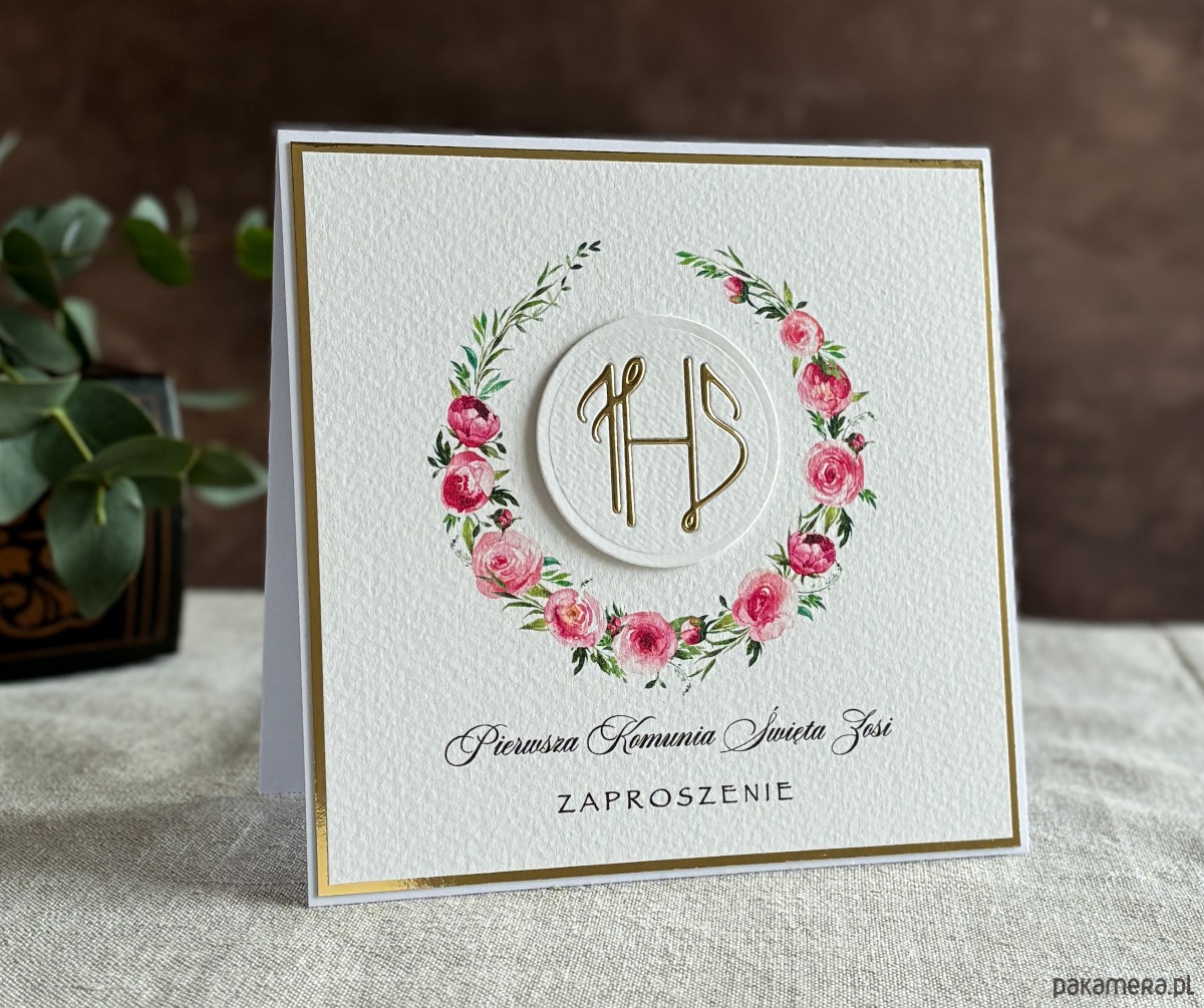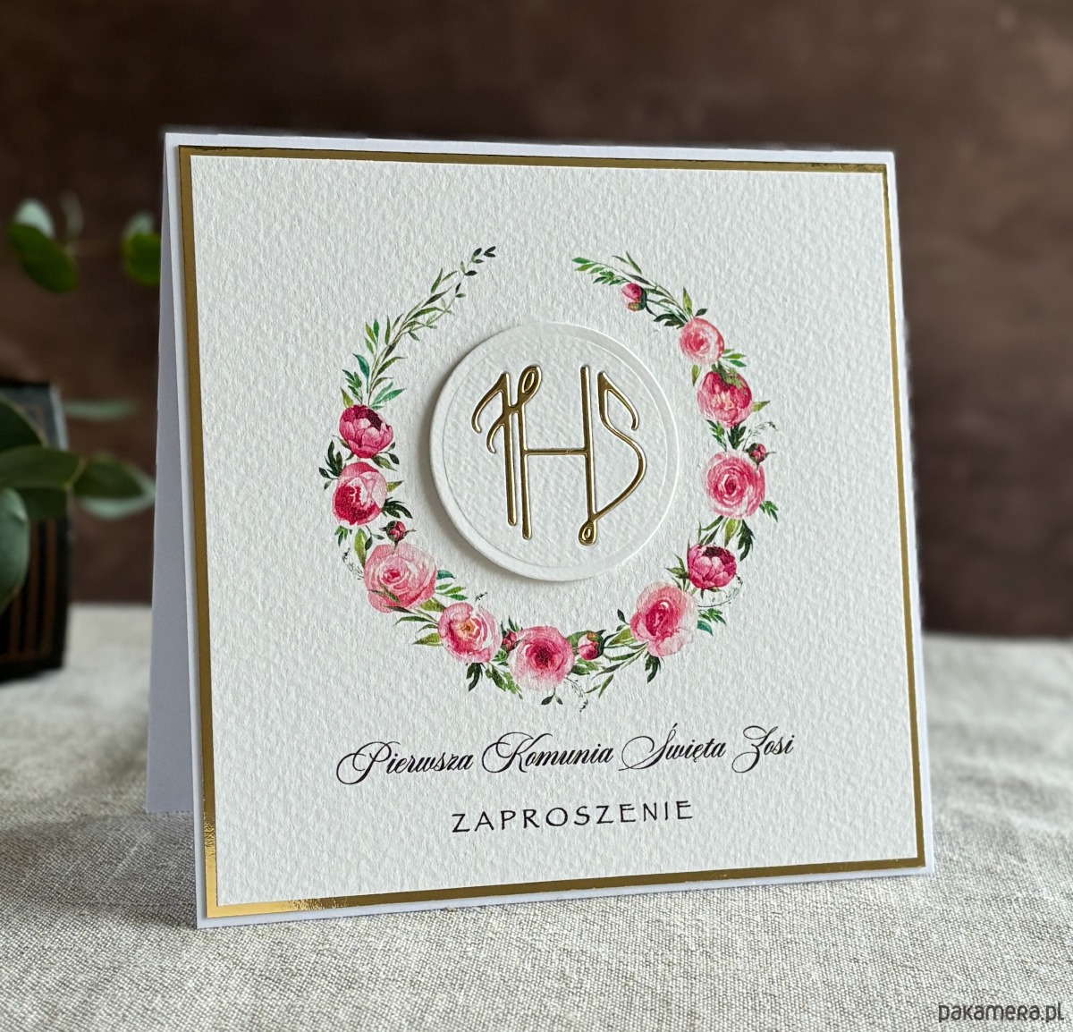 Eleganckie, ręcznie robione, personalizowane zaproszenia komunijne.
