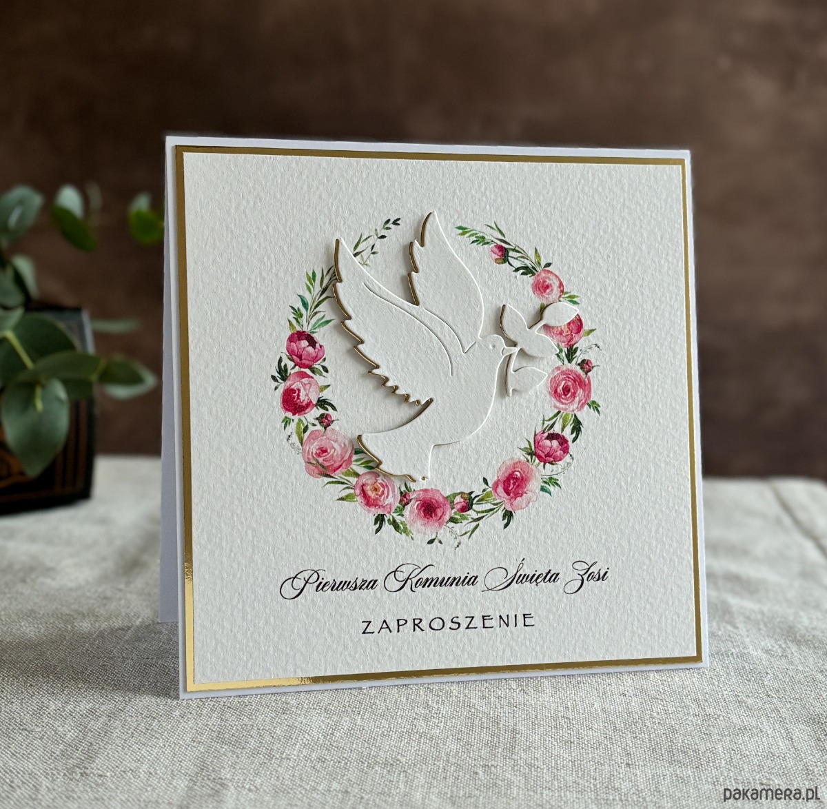 Eleganckie, ręcznie robione, personalizowane zaproszenia komunijne.