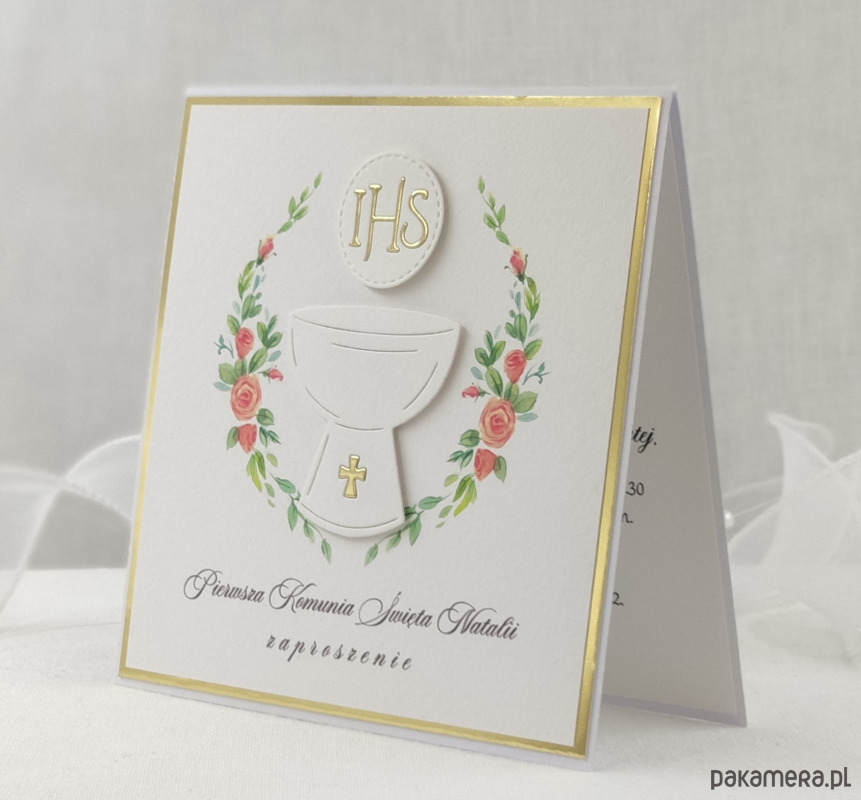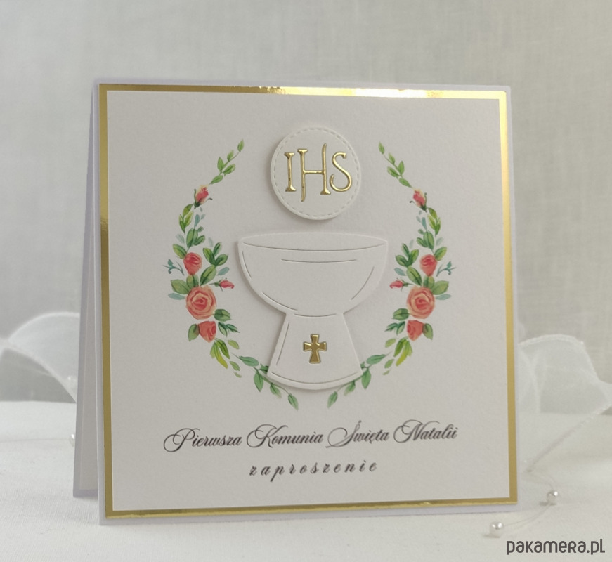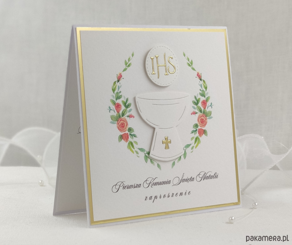 Eleganckie, ręcznie wykonane, personalizowane zaproszenia komunijne.