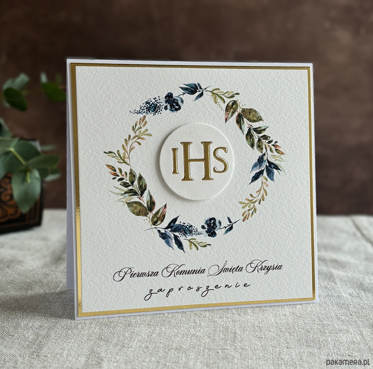 Eleganckie, ręcznie robione, personalizowane zaproszenia komunijne.