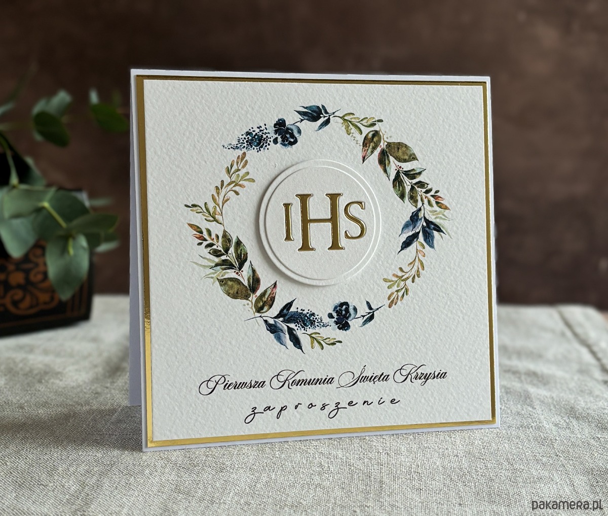 Eleganckie, ręcznie robione, personalizowane zaproszenia komunijne.