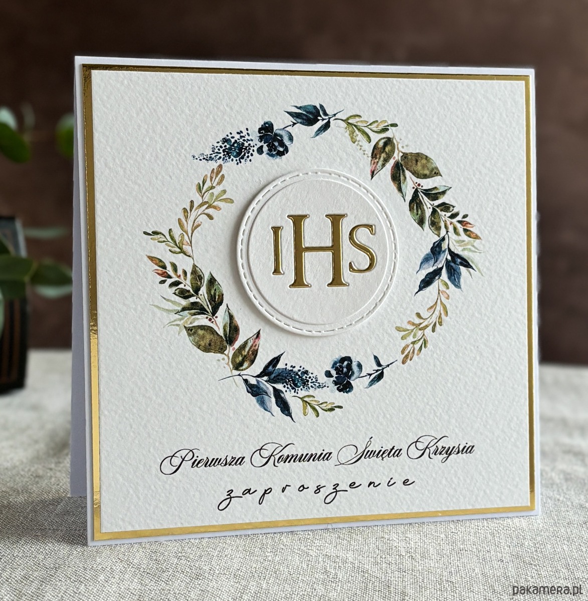 Eleganckie, ręcznie robione, personalizowane zaproszenia komunijne.