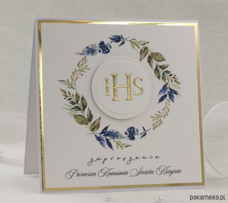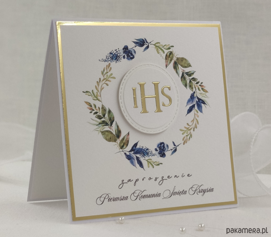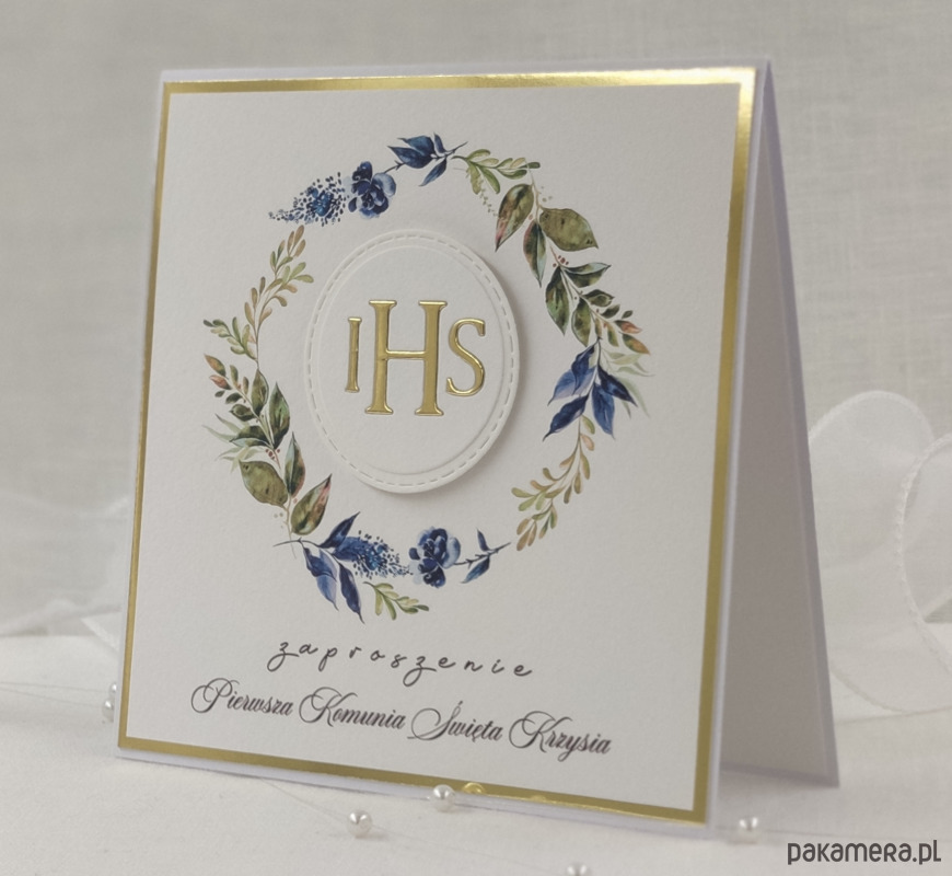 Eleganckie, ręcznie wykonane, personalizowane zaproszenie komunijne.