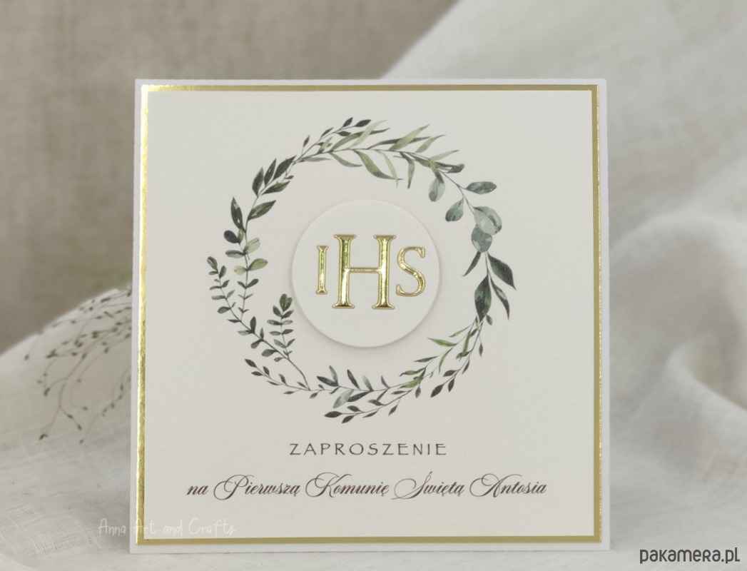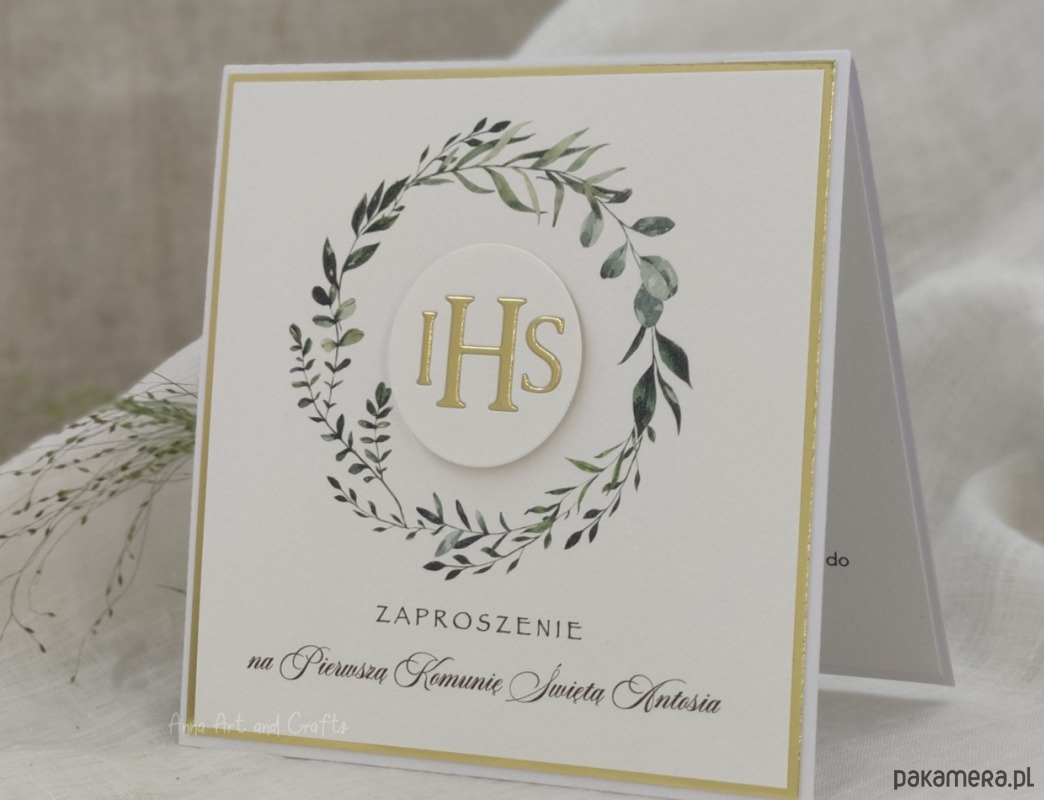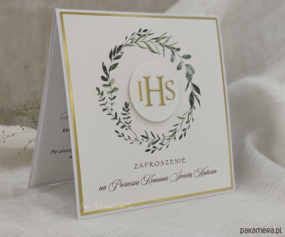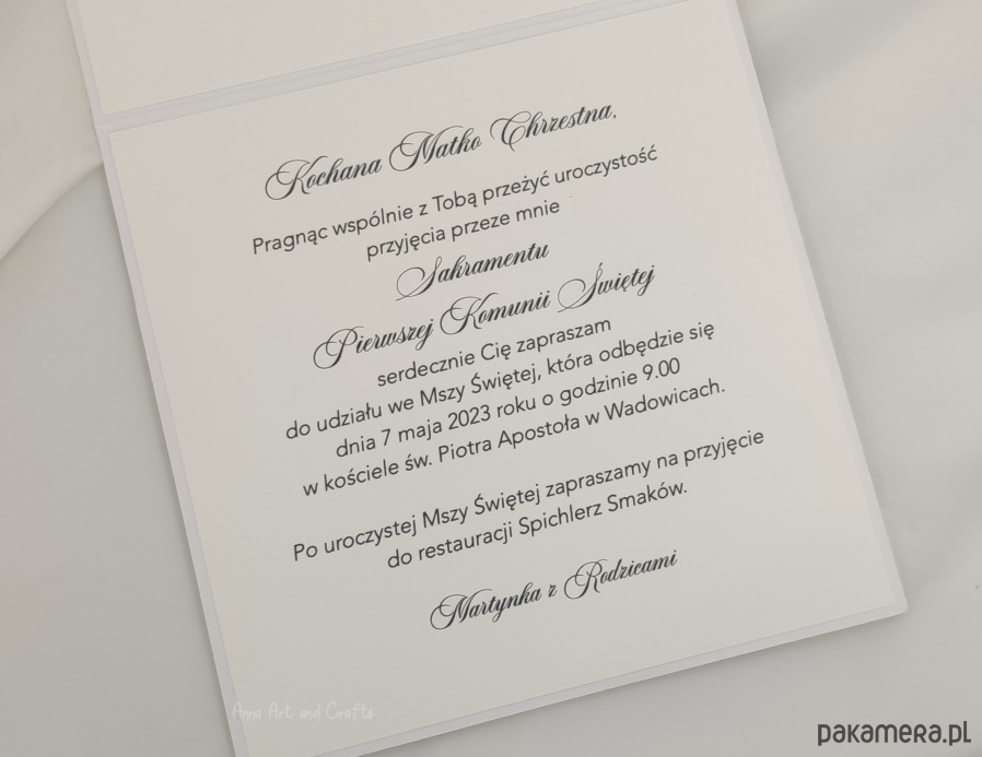 Delikatne i subtelne, ręcznie wykonane zaproszenia komunijne z pełną personalizacją.