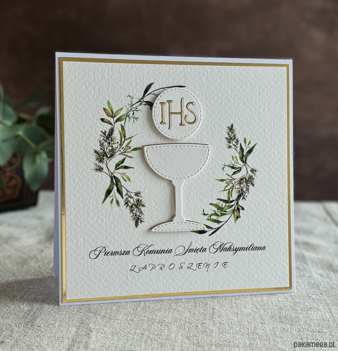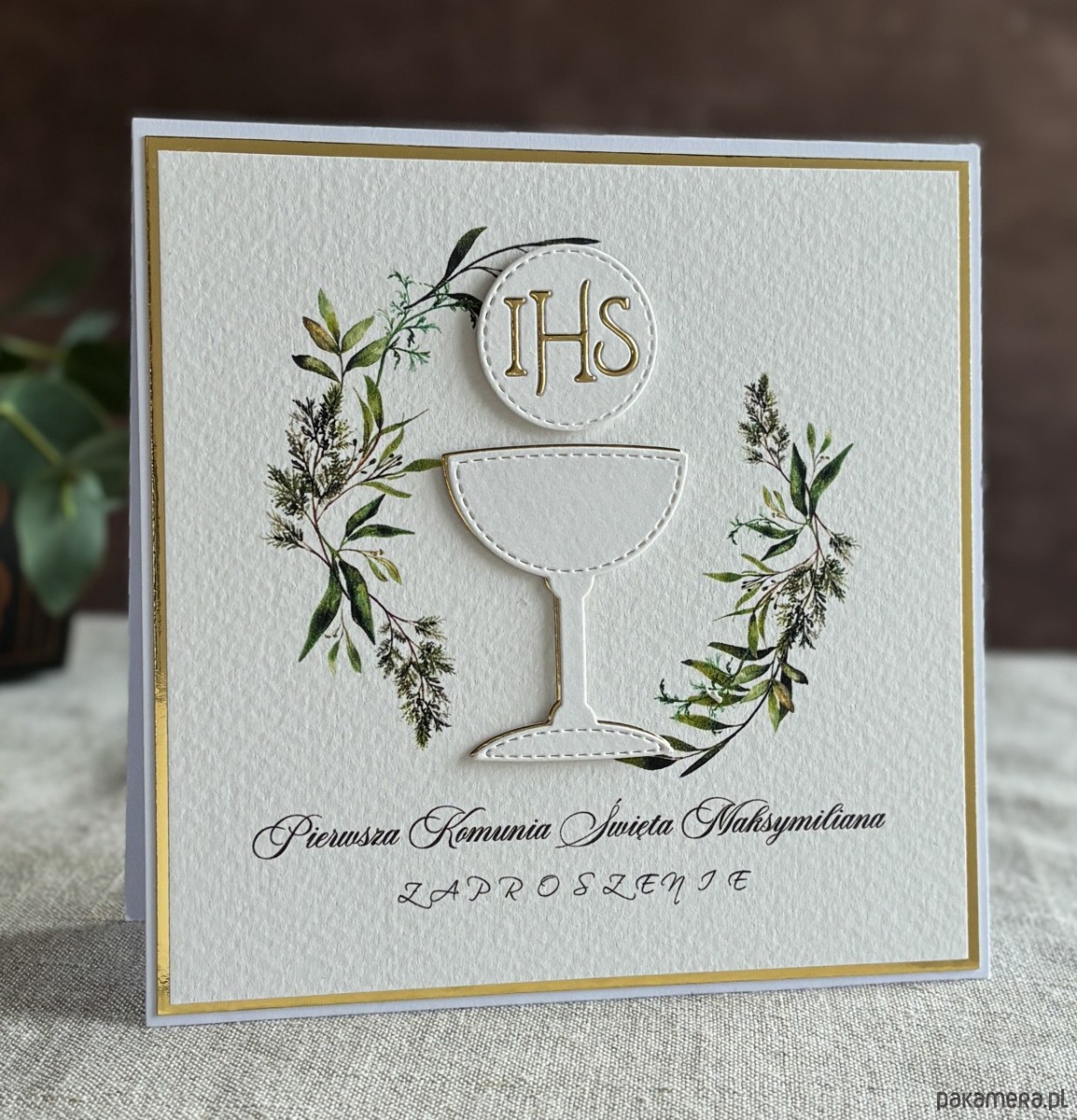 Eleganckie, ręcznie robione, personalizowane zaproszenia komunijne.