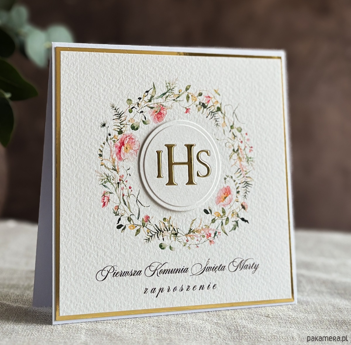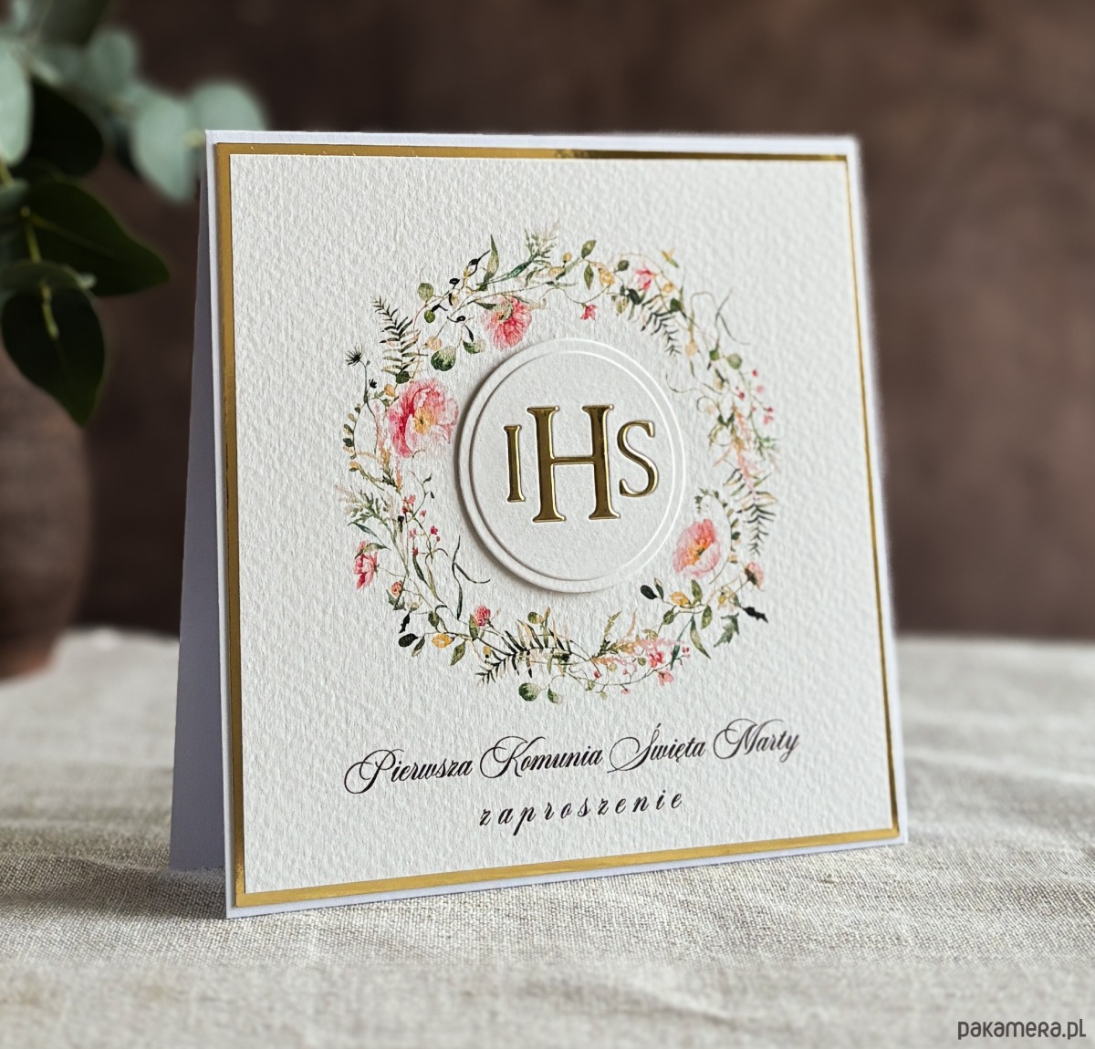 Eleganckie, ręcznie robione, personalizowane zaproszenia na komunię.