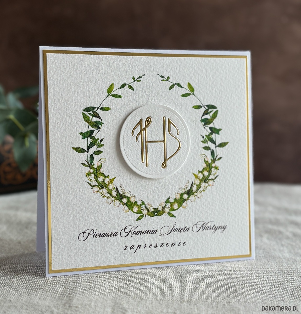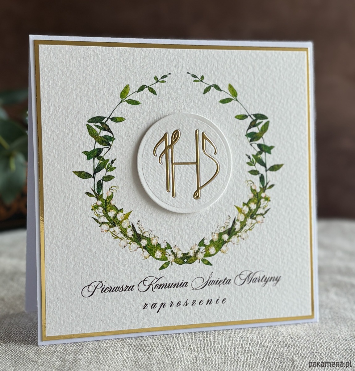 Eleganckie, ręcznie robione, personalizowane zaproszenia komunijne.