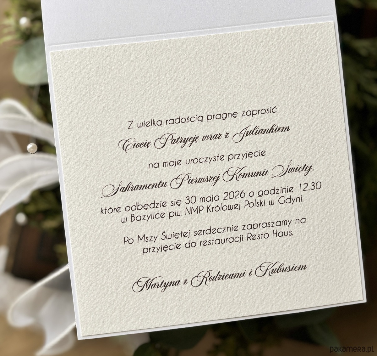 Eleganckie, ręcznie robione, personalizowane zaproszenia komunijne.