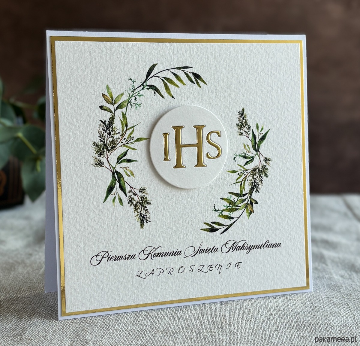 Eleganckie, ręcznie robione, personalizowane zaproszenia komunijne.