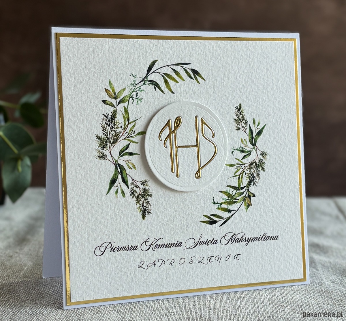 Eleganckie, ręcznie robione, personalizowane zaproszenia komunijne.
