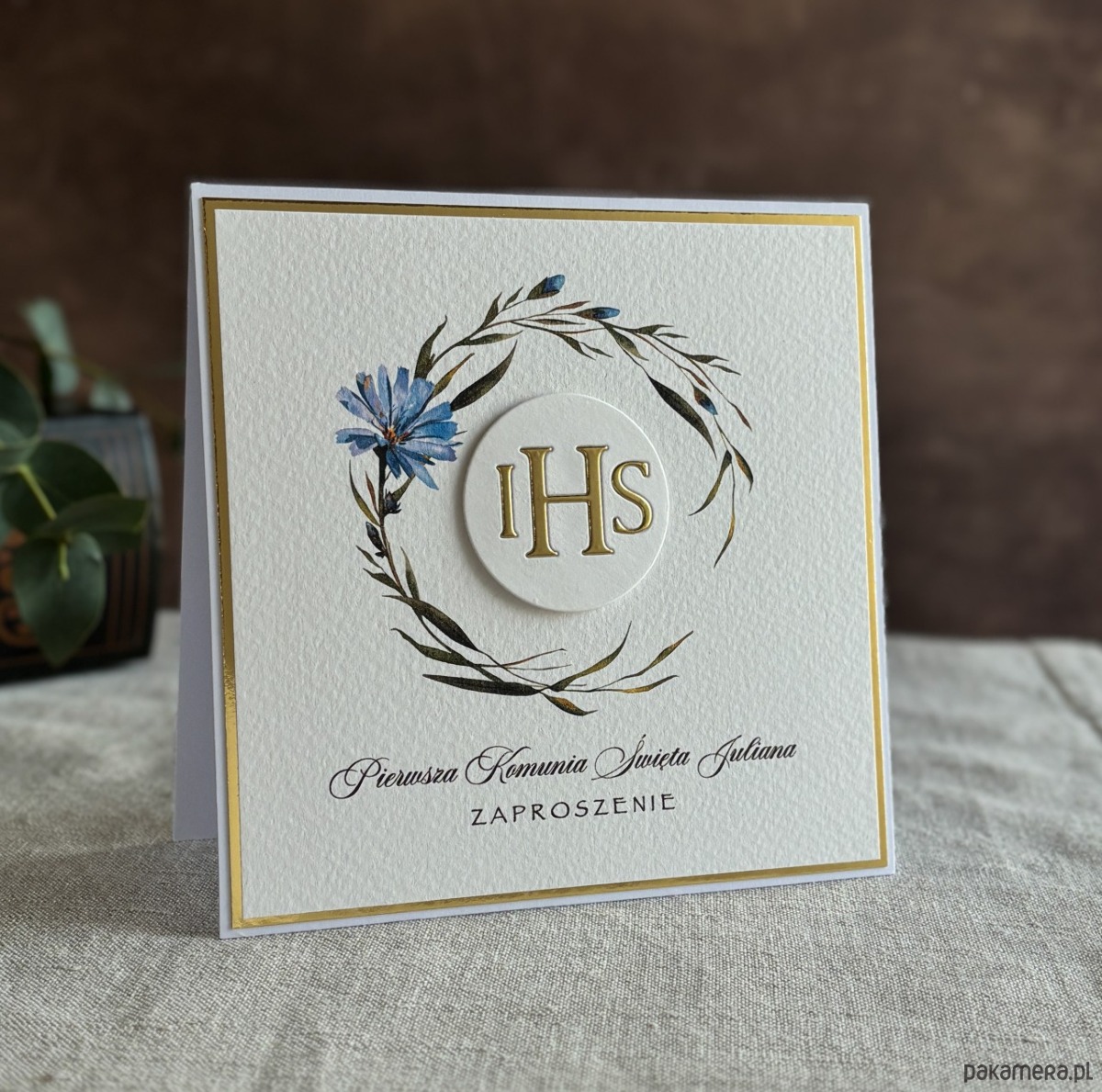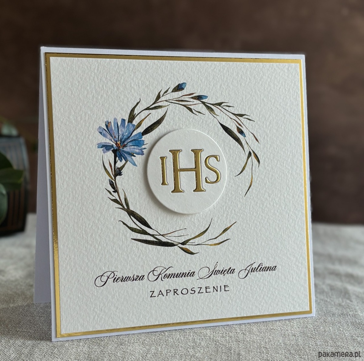 Eleganckie, ręcznie robione, personalizowane zaproszenia komunijne.