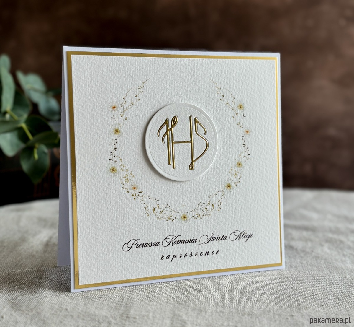 Eleganckie, ręcznie robione, personalizowane zaproszenia komunijne.