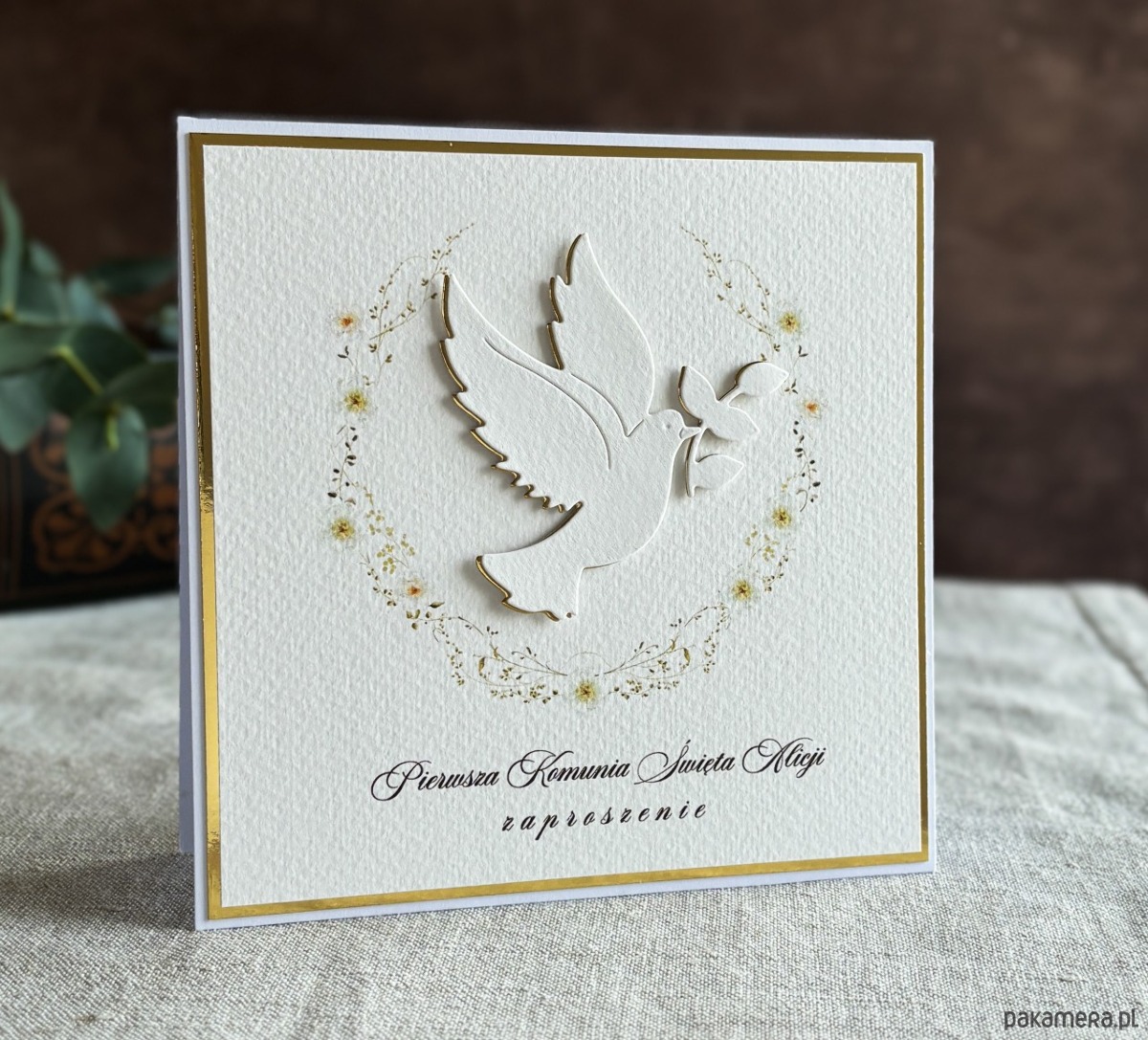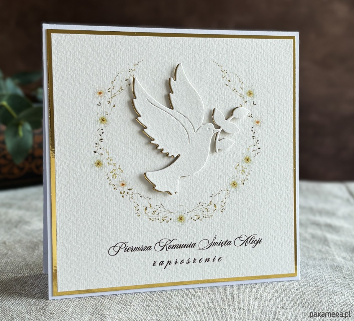 Eleganckie, ręcznie robione, personalizowane zaproszenia komunijne.