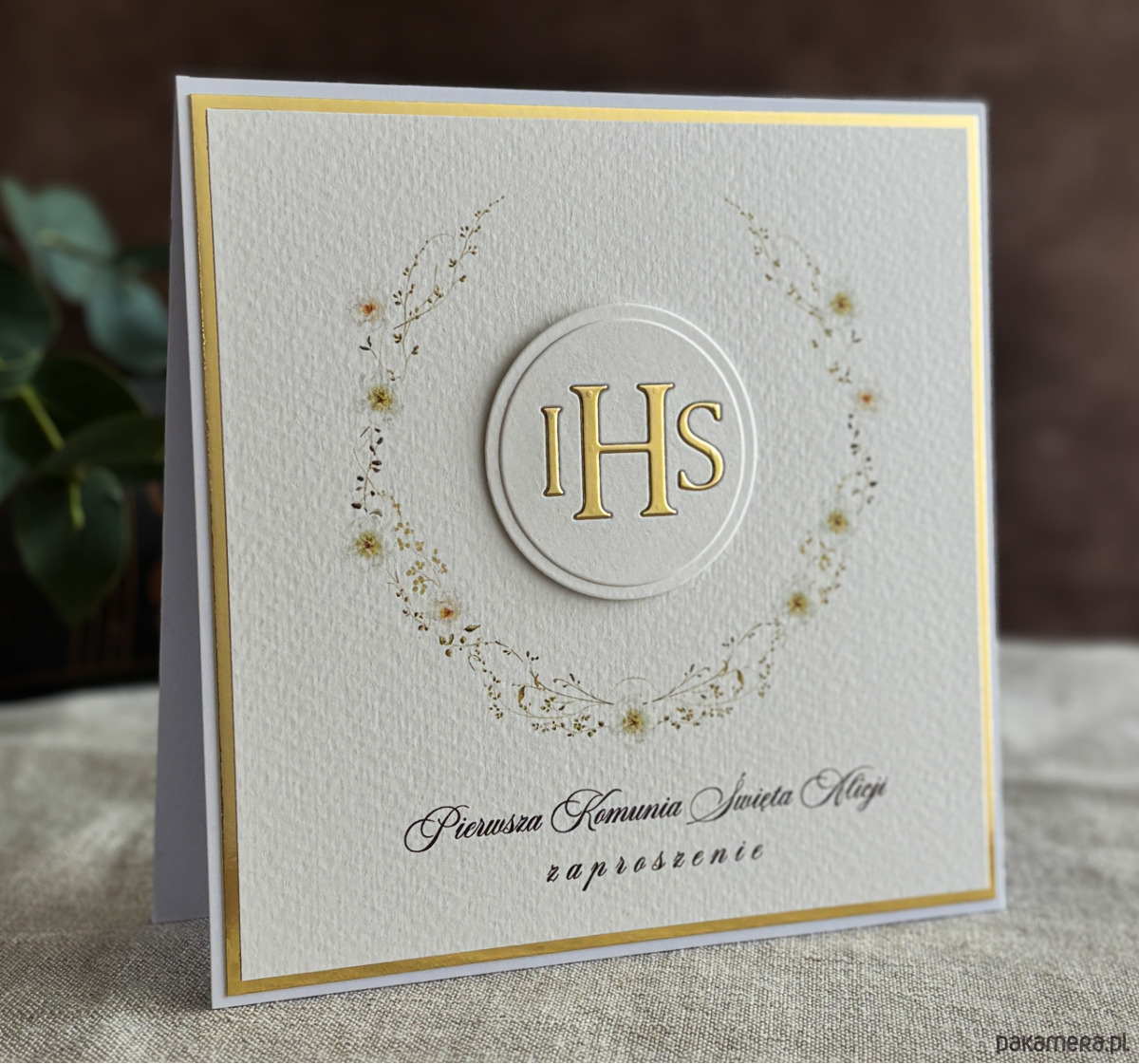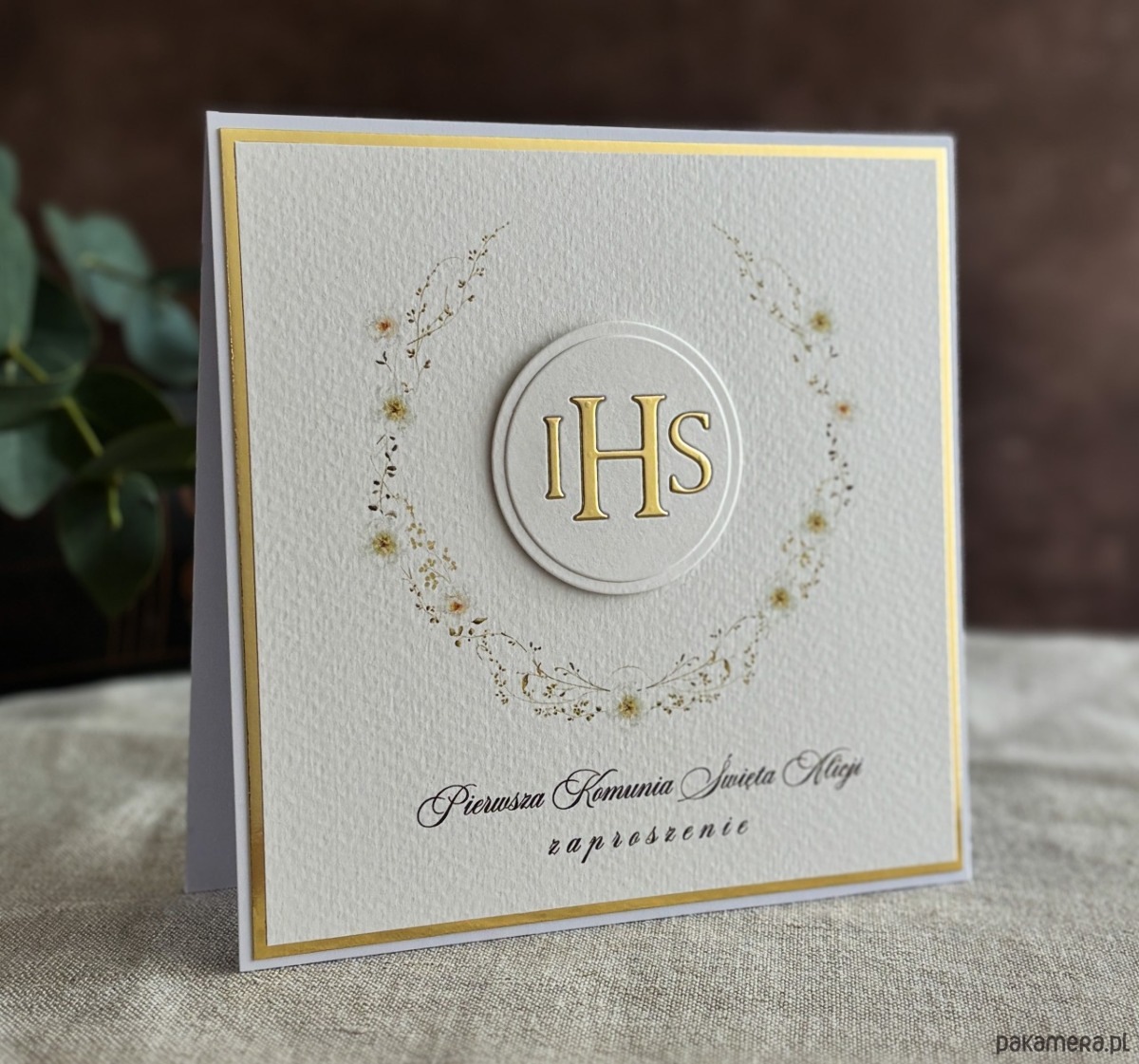 Eleganckie, ręcznie robione, personalizowane zaproszenia komunijne.