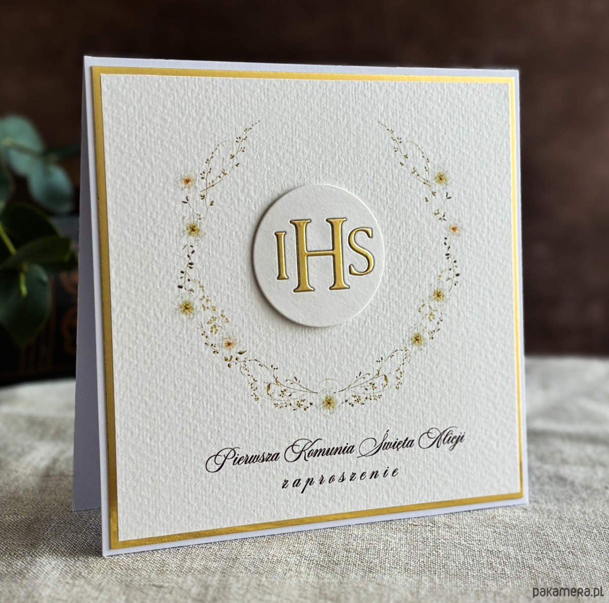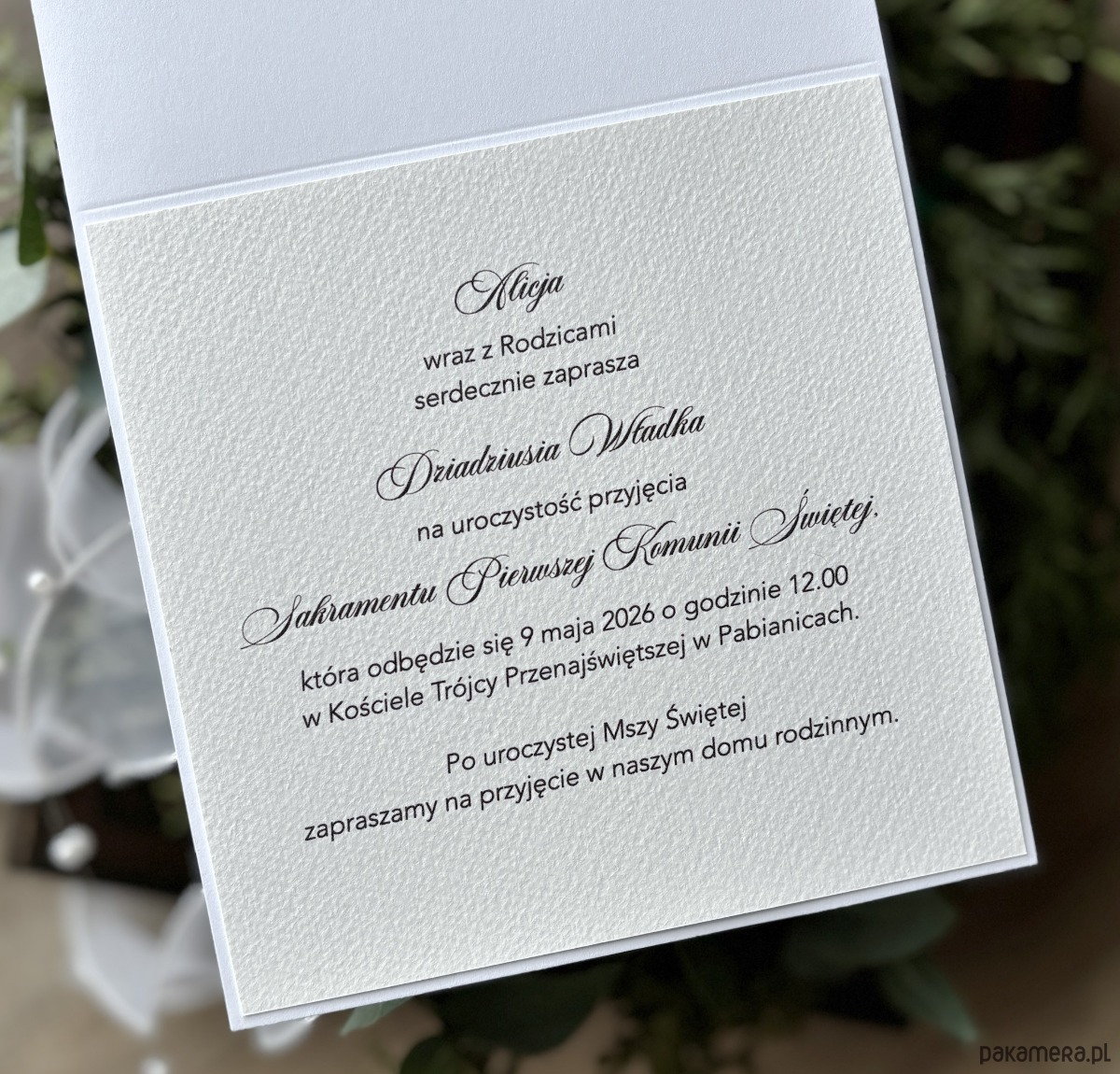 Eleganckie, ręcznie robione, personalizowane zaproszenia komunijne.