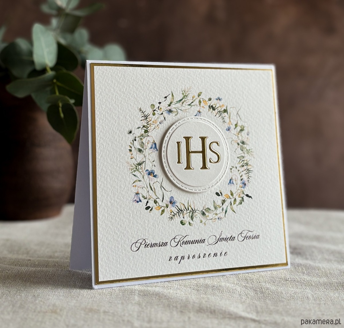 Eleganckie, ręcznie robione, personalizowane zaproszenia komunijne.