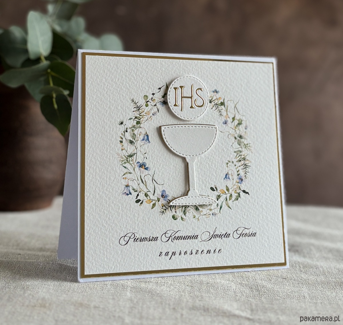 Eleganckie, ręcznie robione, personalizowane zaproszenia komunijne.