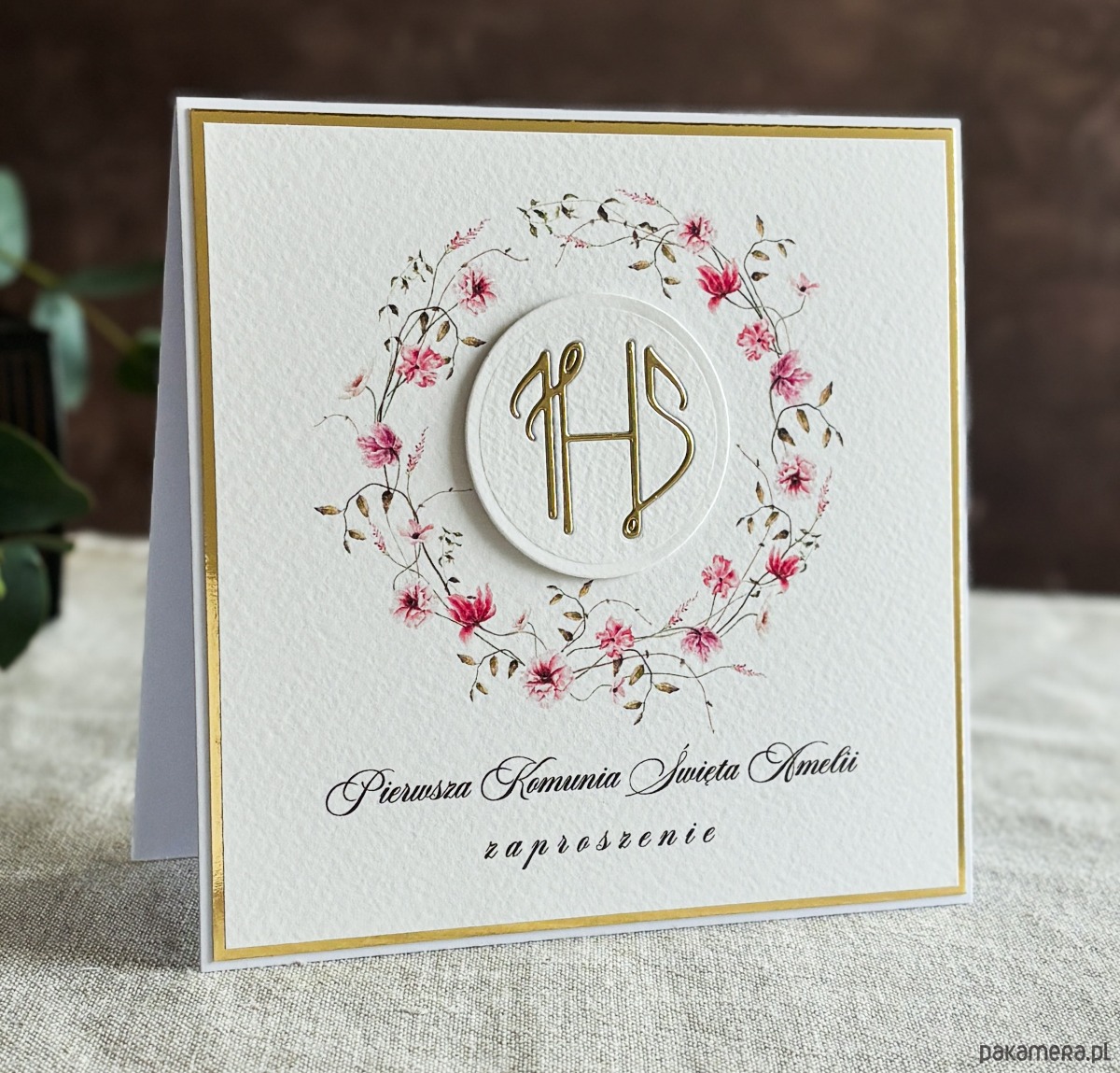 Eleganckie, ręcznie robione, personalizowane zaproszenia komunijne.