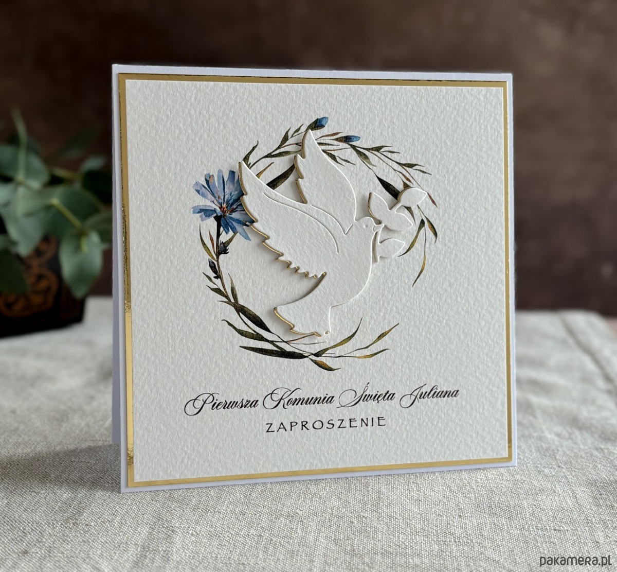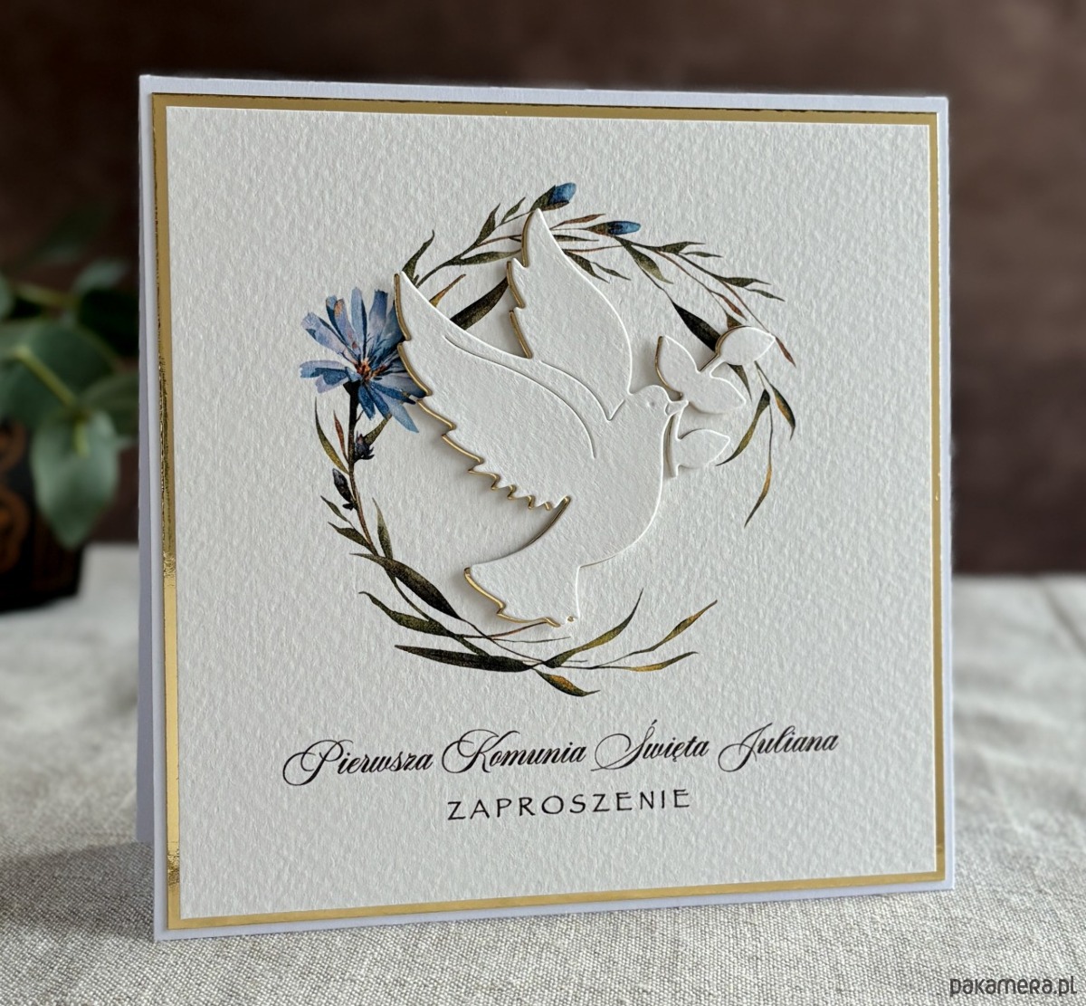Eleganckie, ręcznie robione, personalizowane zaproszenia komunijne.