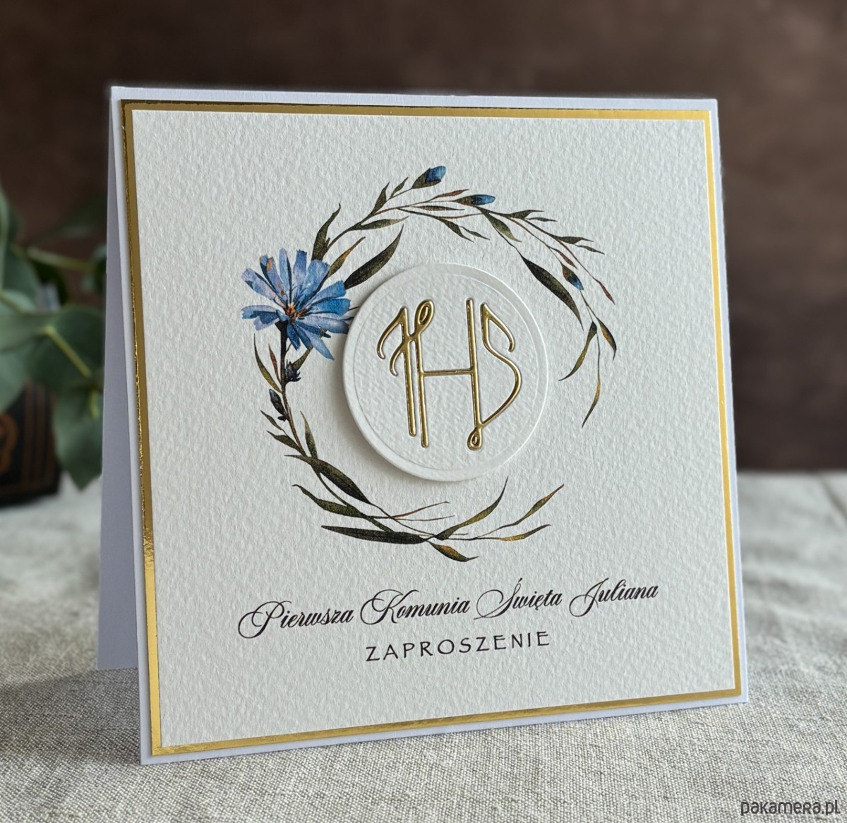 Eleganckie, ręcznie robione, personalizowane zaproszenia komunijne.