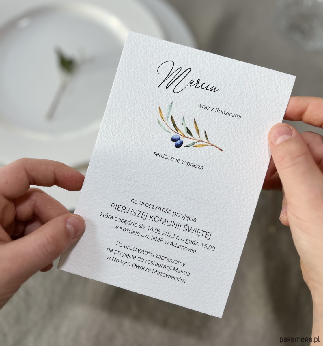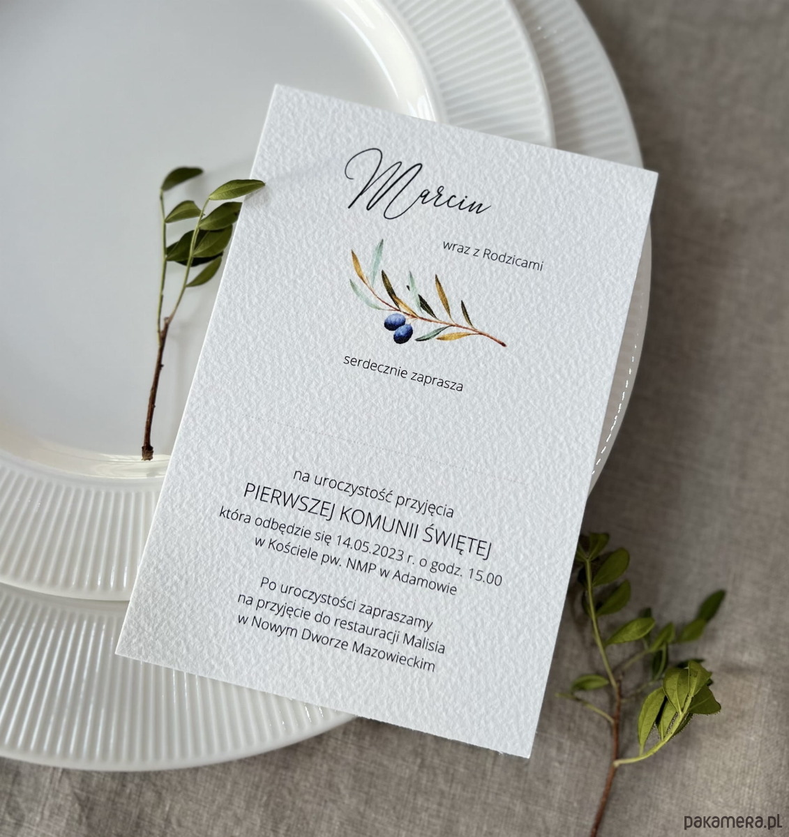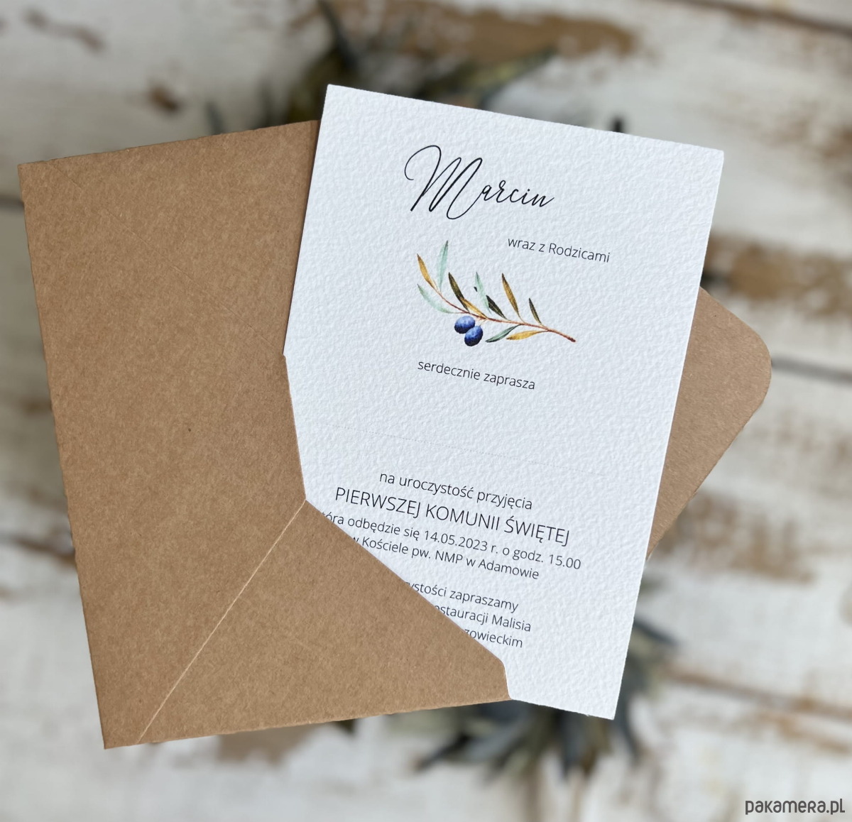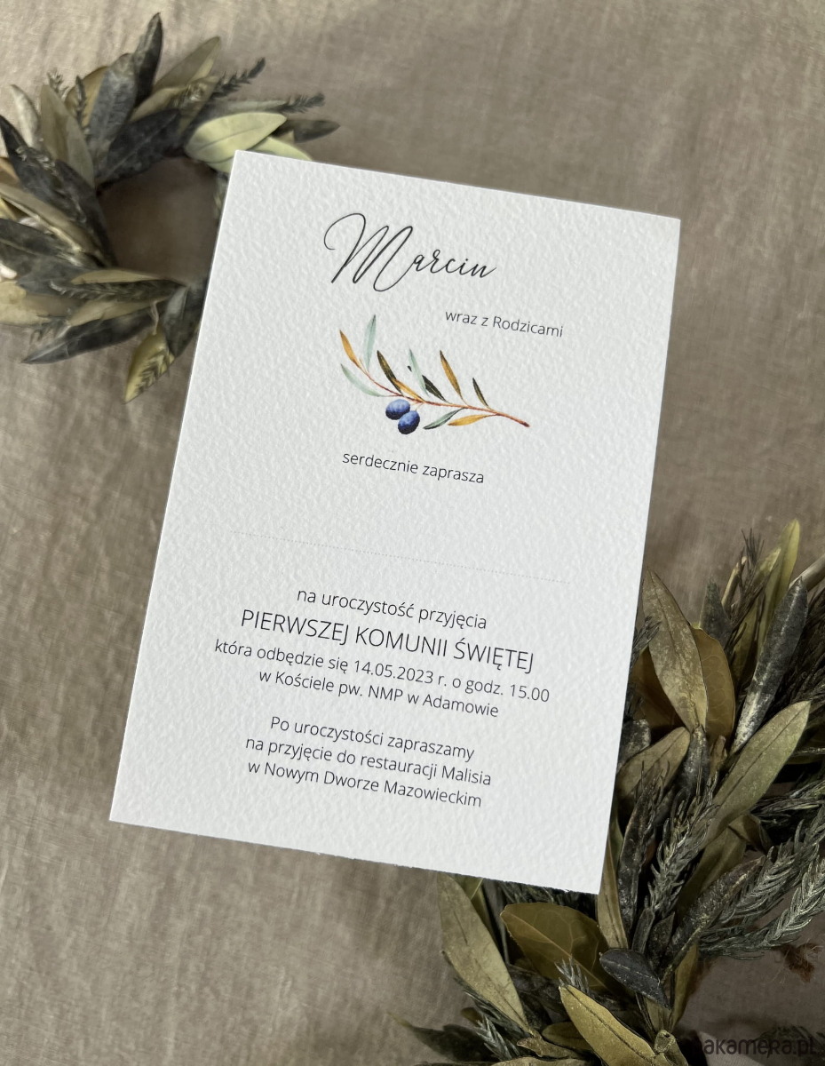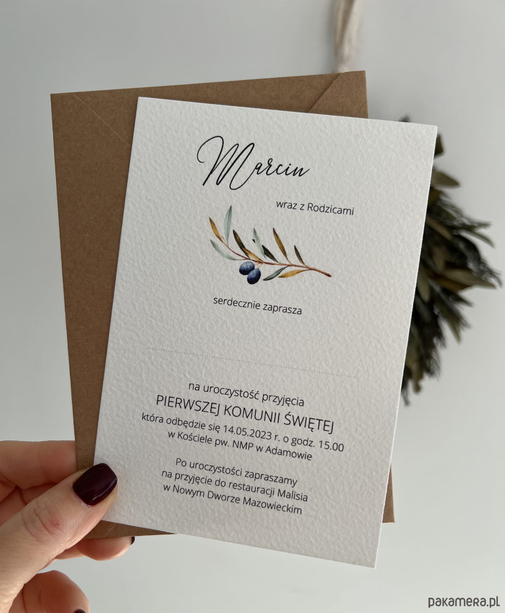 Zaproszenia na komunię z gałązką oliwną