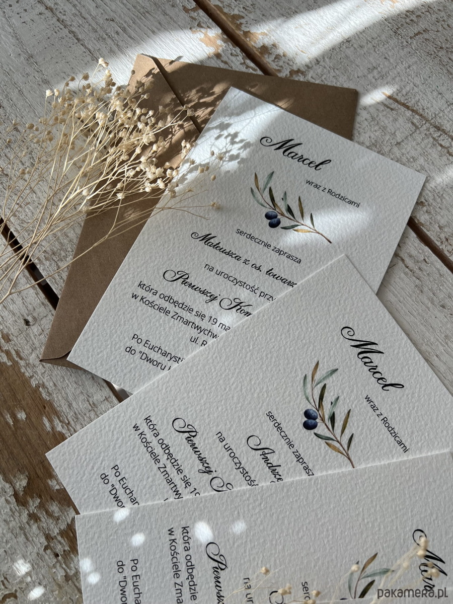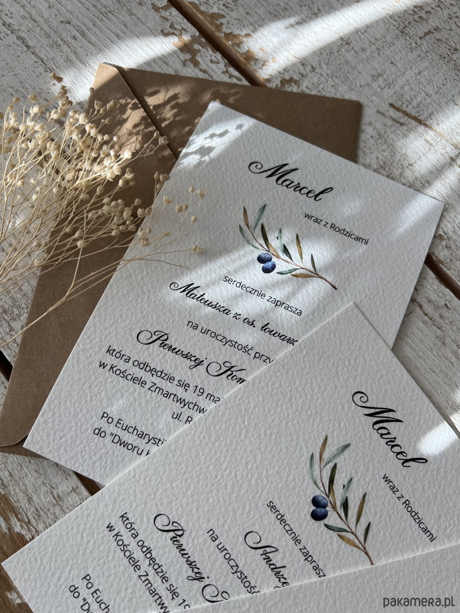 Zaproszenia na komunię z gałązką oliwną z personalizacją