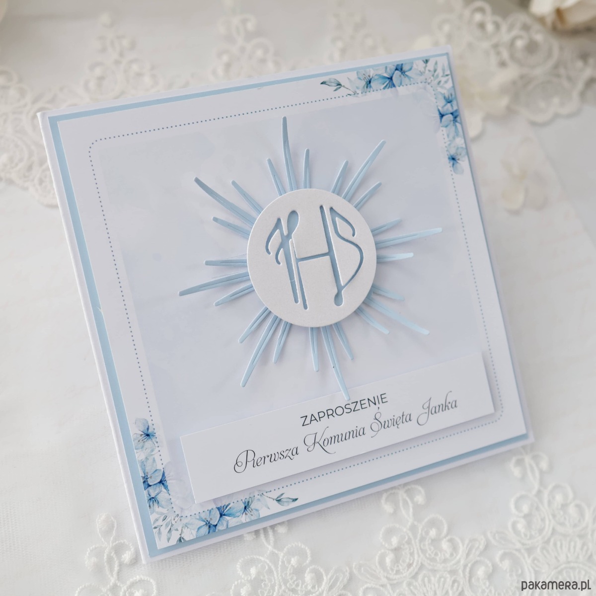 Wymiar zaproszenia: 14,5 × 14,5 cm.