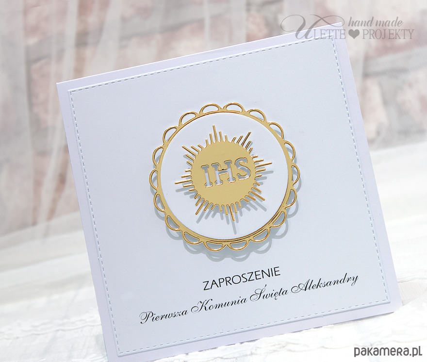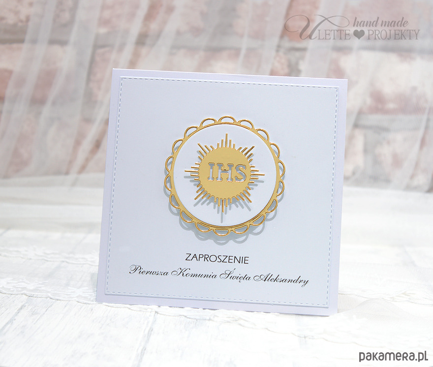 Eleganckie satynowe zaproszenie na komunię. Wszystkie użyte papiery, to wysokiej jakości papiery wizytówkowe od polskich producentów zapewniają odpowiednią jakość produktu. Elementy są wycinane i wytłaczane ręcznie za pomocą specjalnych narzędzi. Niektóre wykonane są z lustrzanego złotego papieru delikatnie mieniąc się w zależności od kąta nachylenia.