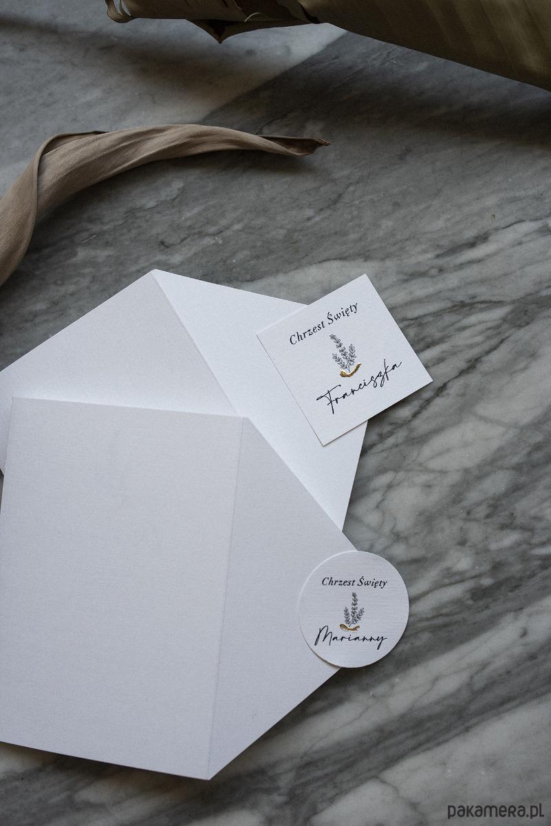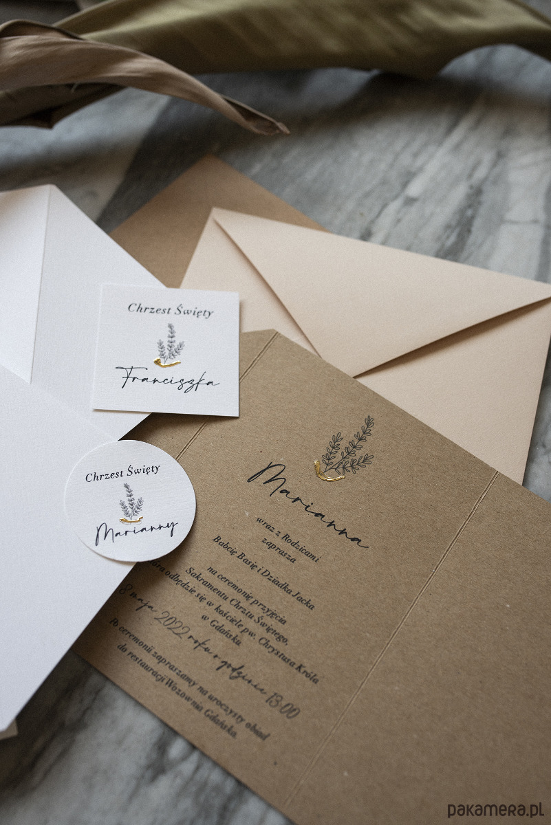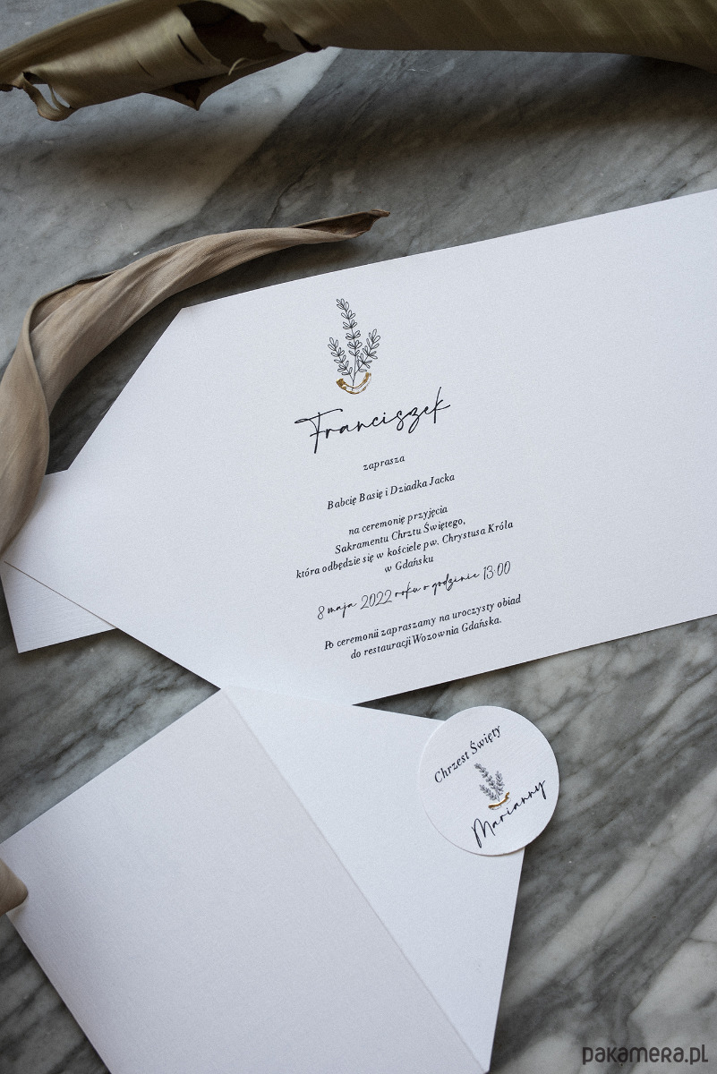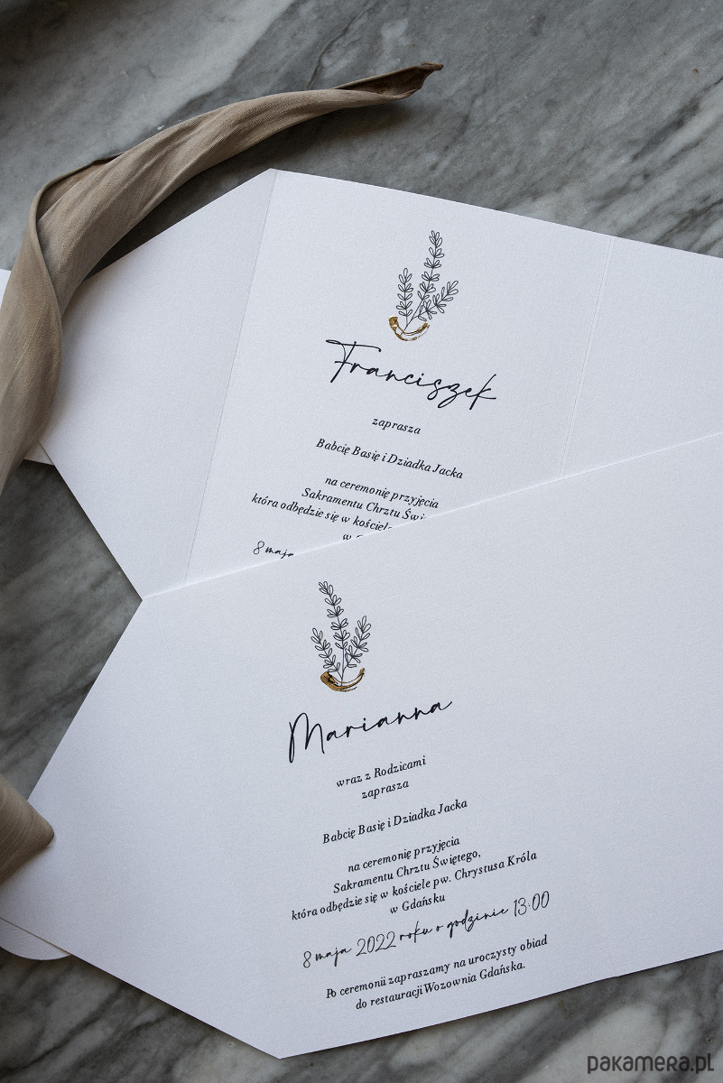 zaproszenie na chrzciny z kolekcji Goldie, minimalistyczna kolekcja z ręcznym złoceniem