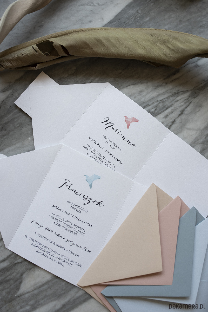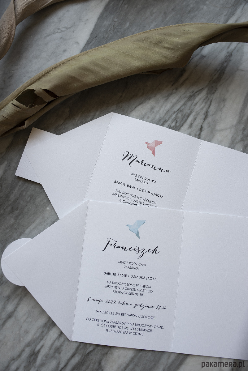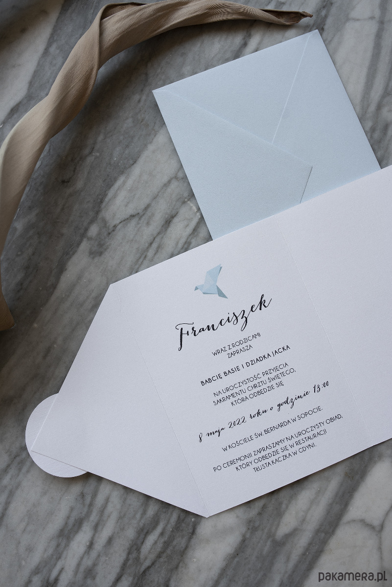 Zaproszenie na chrzciny wzór Origami