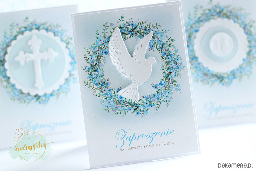 Zaproszenie na I Komunię Świętą - GOŁĄBEK niebieski