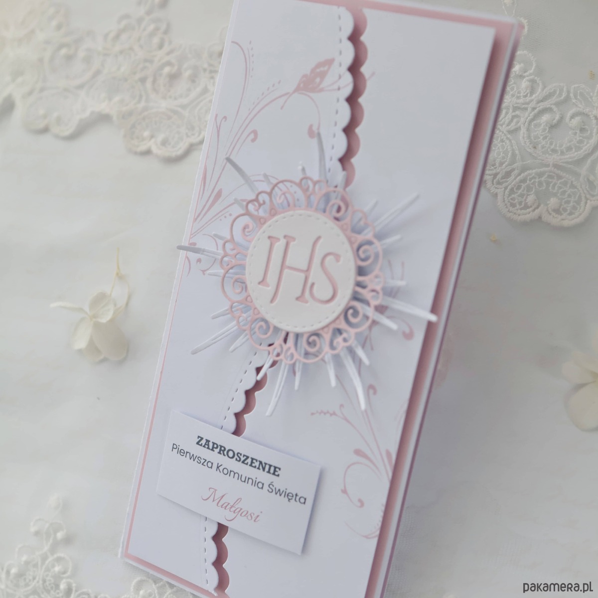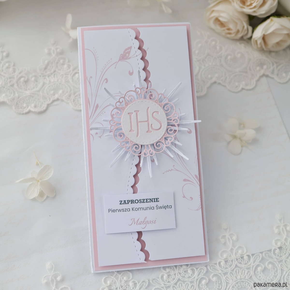 Zaproszenie komunijne dla dziewczynki różowe