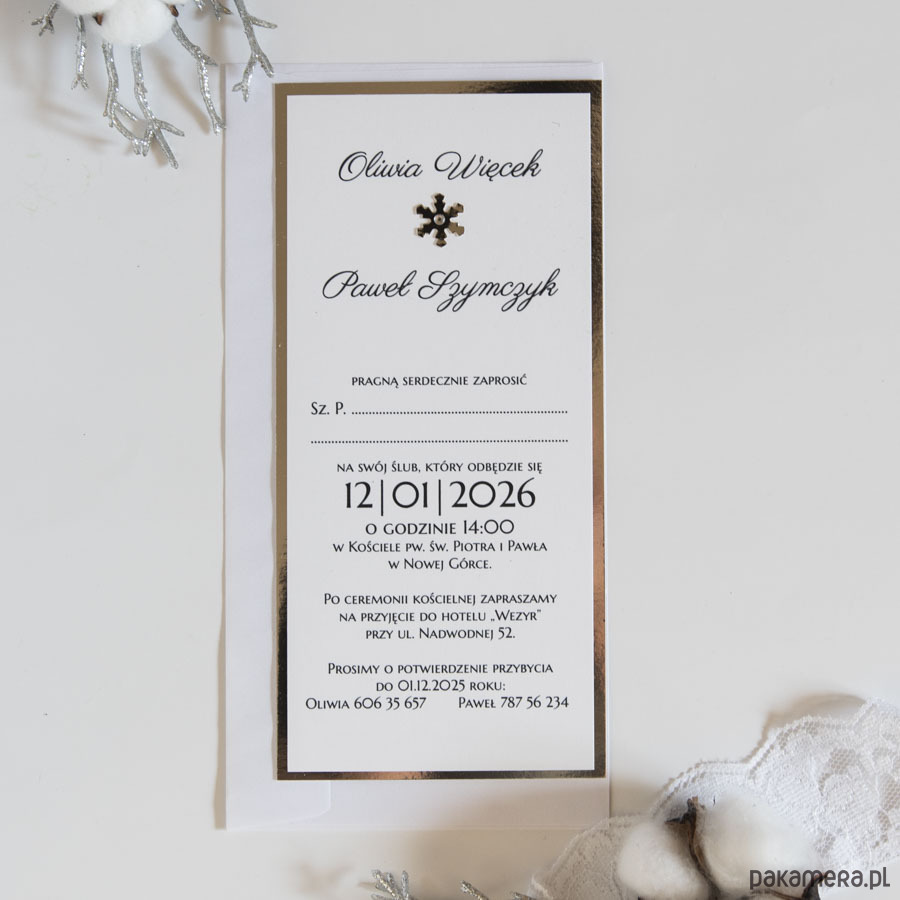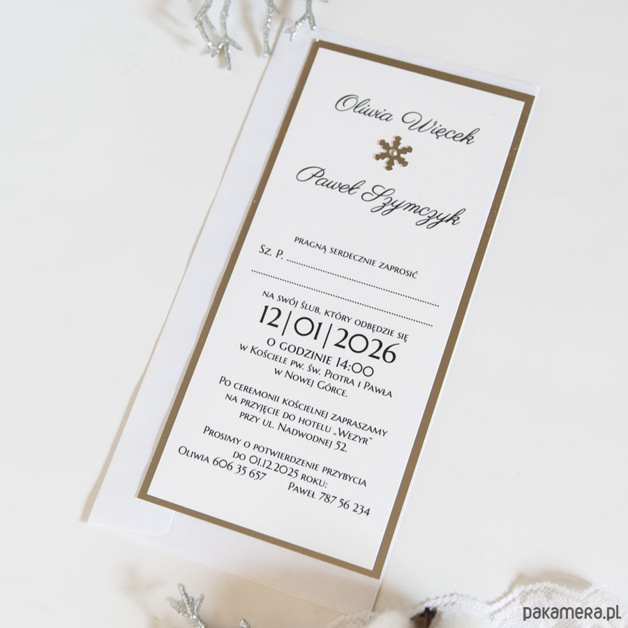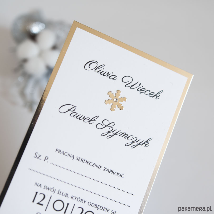Elagancja w nowoczesnym wydaniu. Srebrne zaproszenia ze śnieżynką idealne na zimowy ślub i wesele.
