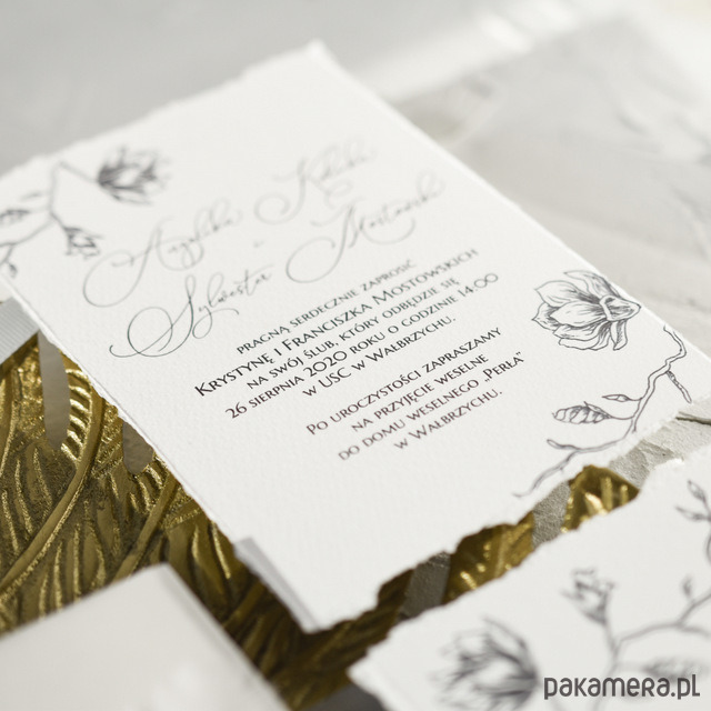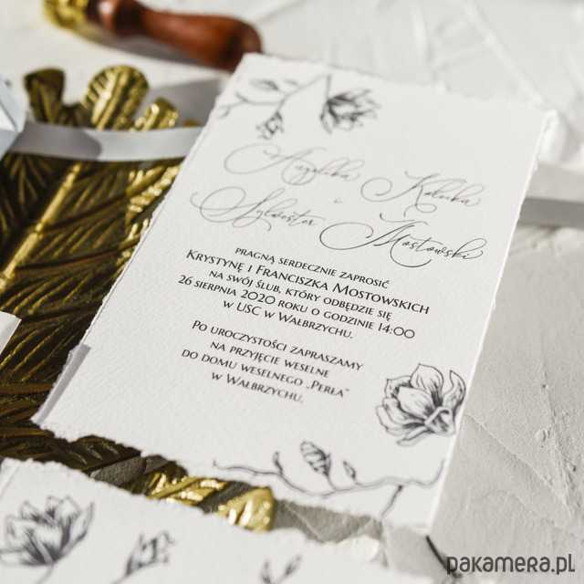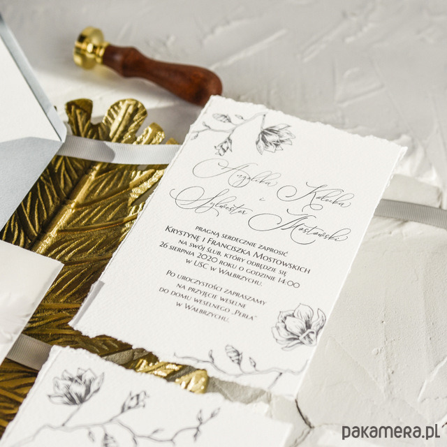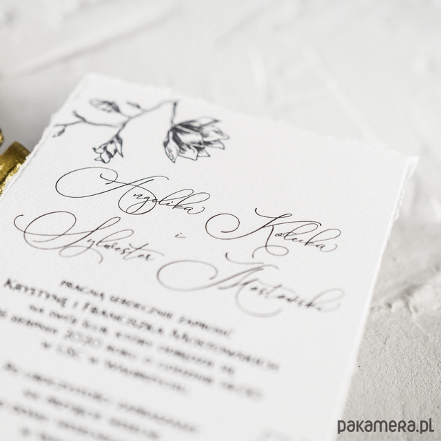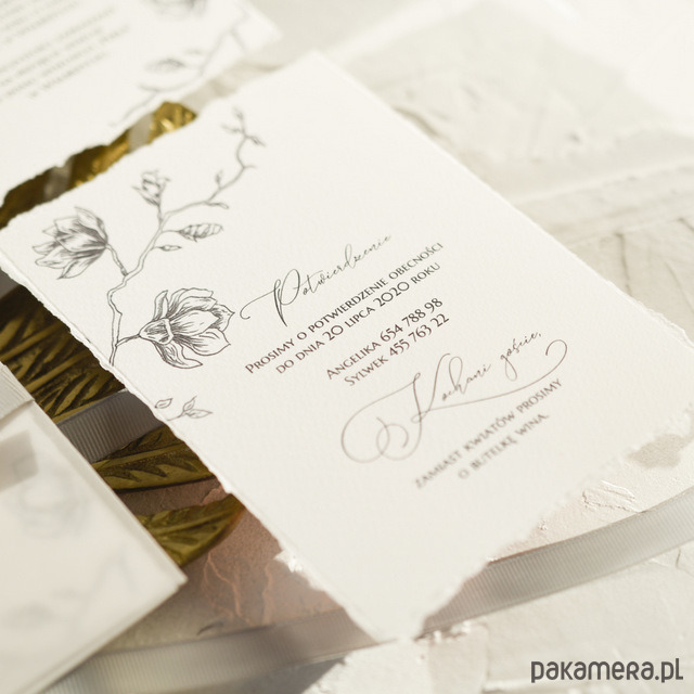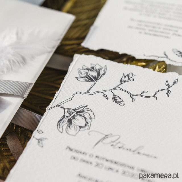 Zaproszenie ślubne "Magnolia" szarpane brzegi lak
