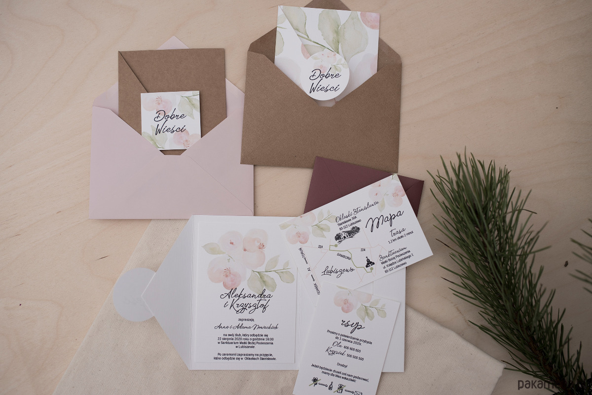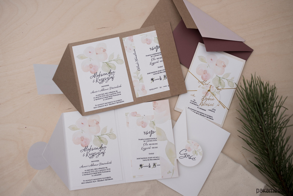 Cena dotyczy jednej sztuki zaproszenia. Po przesłaniu danych do projektu i listy gości przesyłamy link do zamówienia wybranej ilości zaproszeń