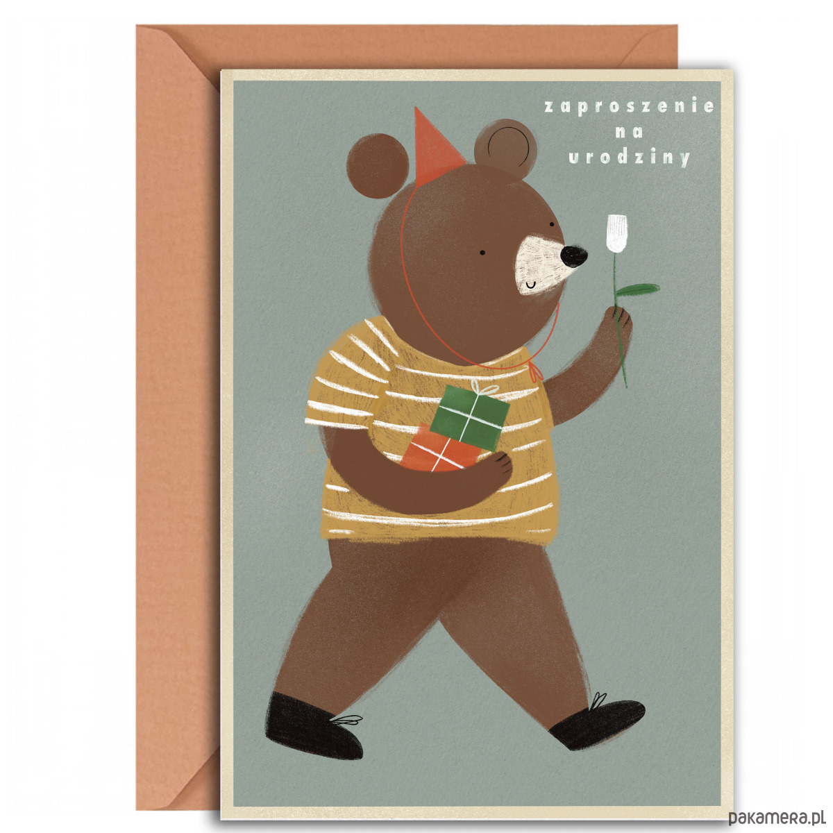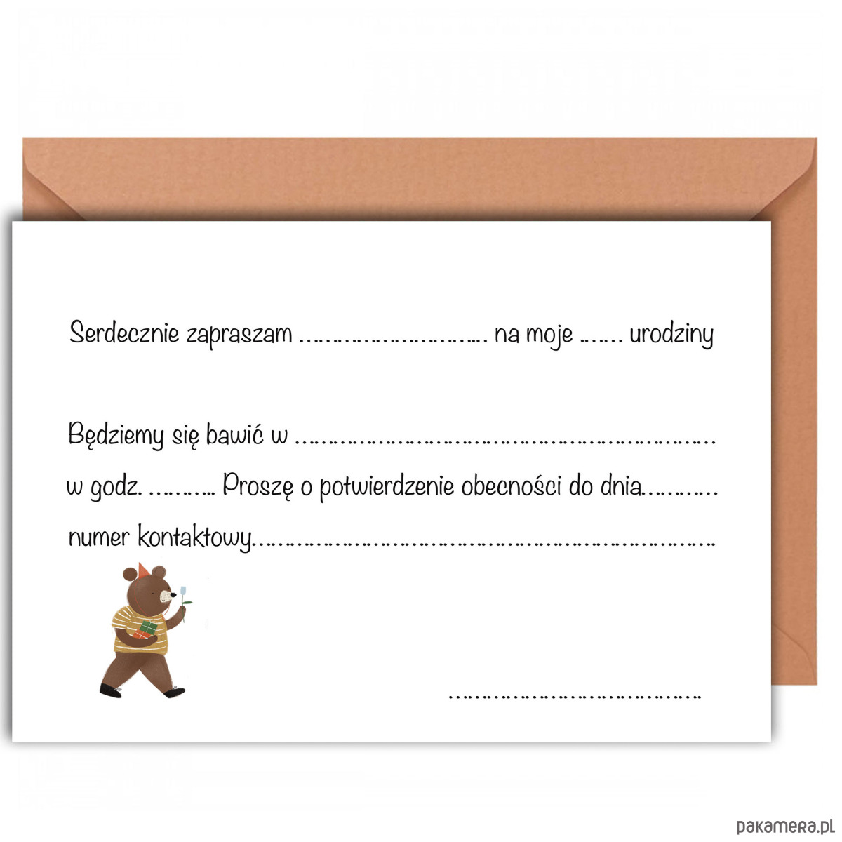 Zaproszenie w komplecie z karmelową kopertą (zastrzega się możliwość wysyłki koperty w innym kolorze w sytuacji braku wzorcowej koperty).