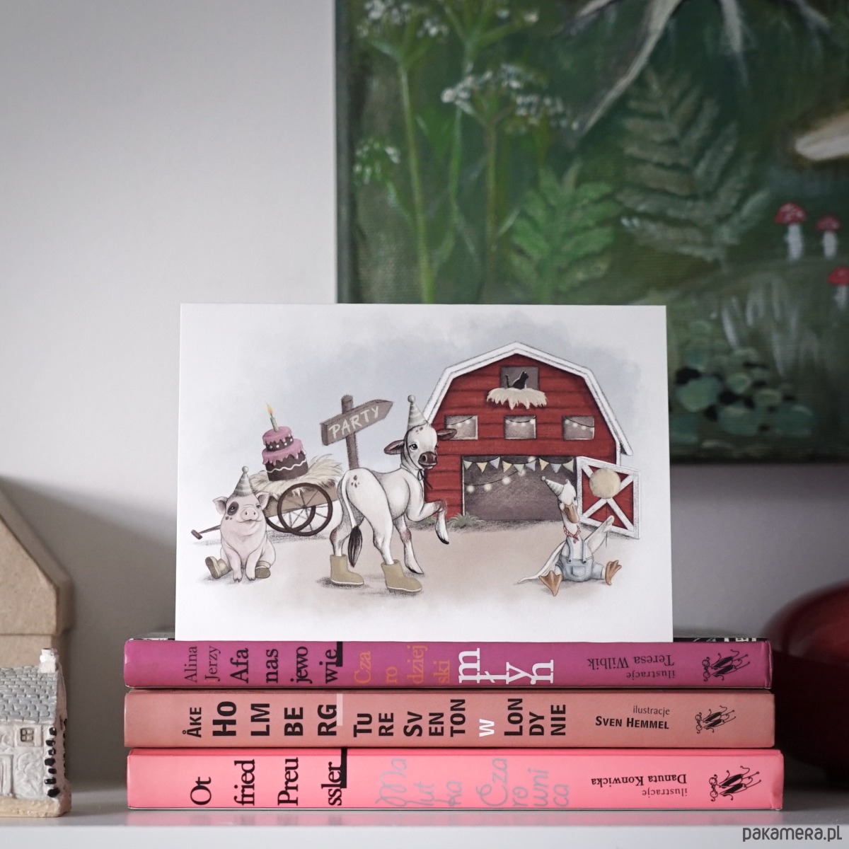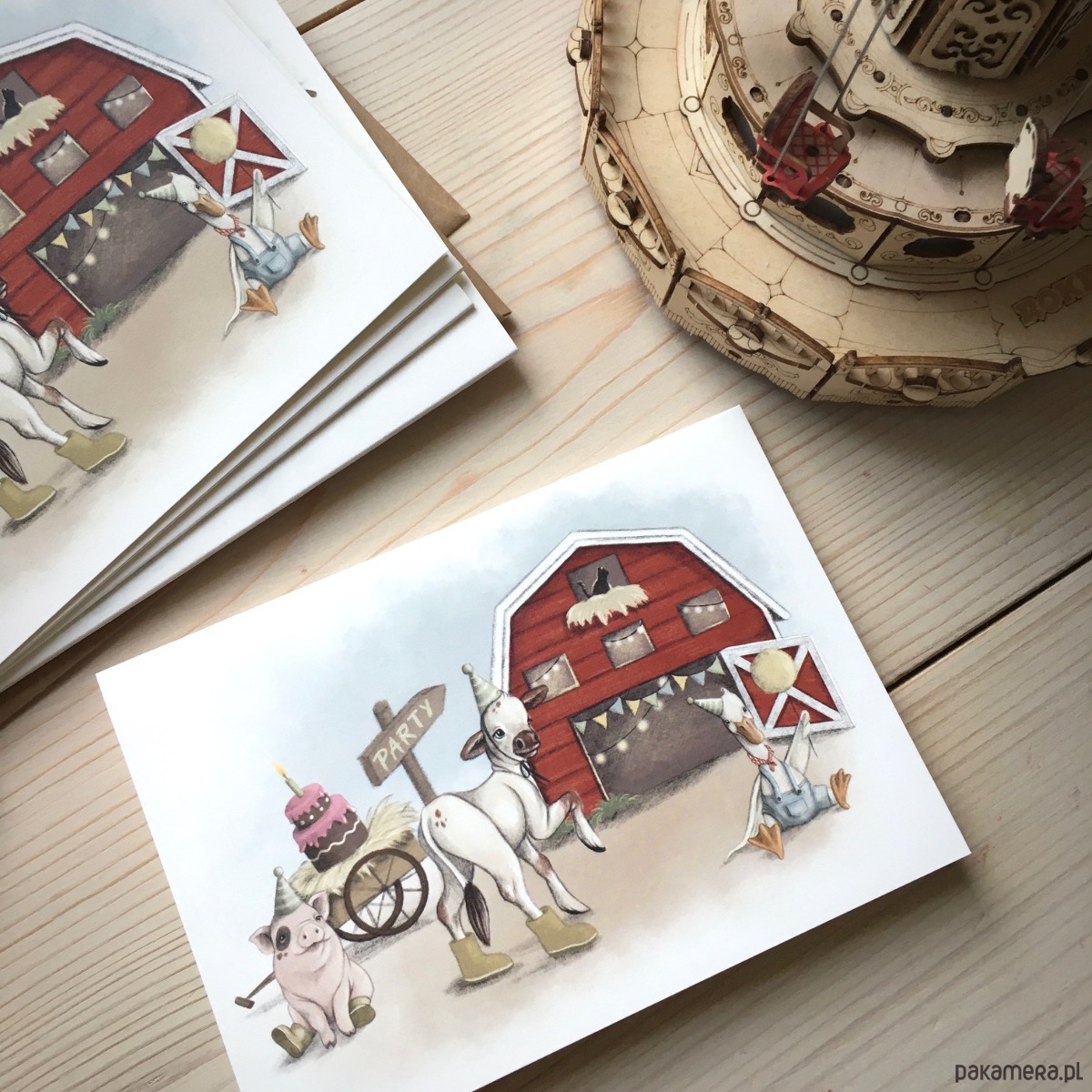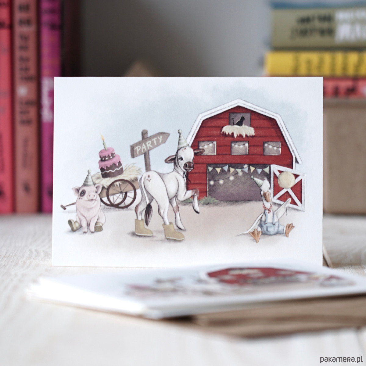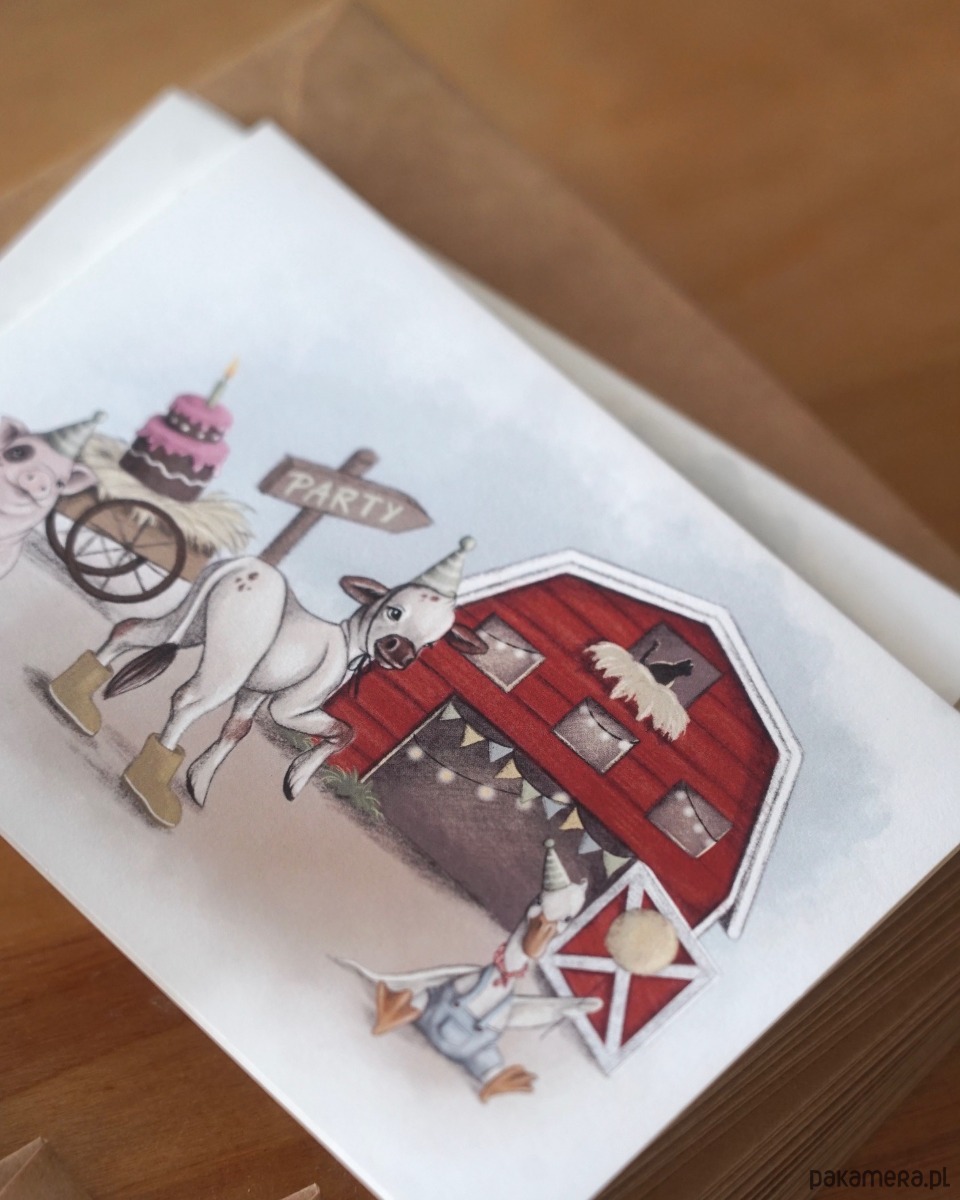 Możesz dokupić też bileciki do prezentów oraz naklejki do zaklejania kopert ze zwierzątkami z zaproszeń: świnką, krówką i kaczorkiem.