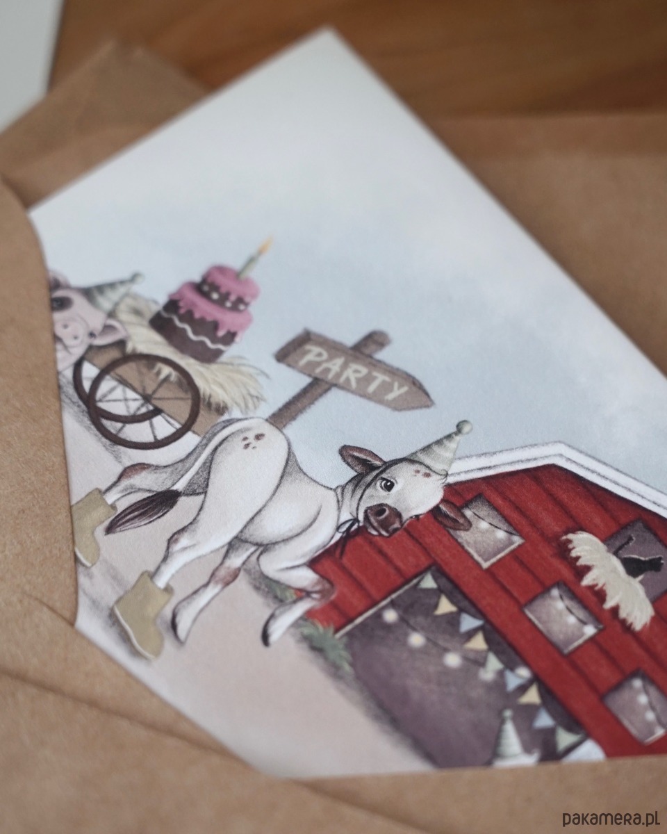 Zaproszenie urodzinowe, rozkładane z kopertą FARMA Hi Little