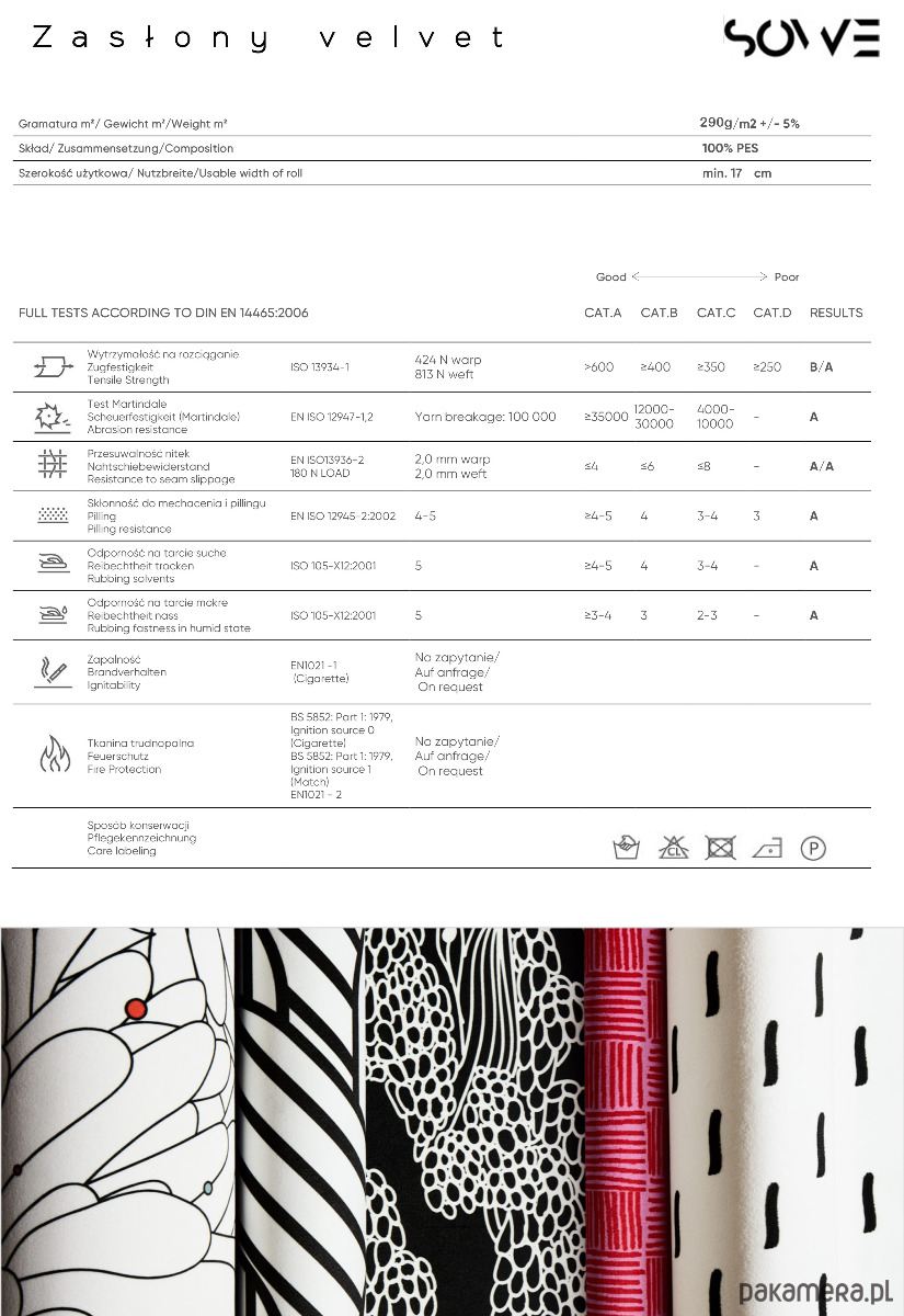 Zasłony SOWE wykonane są z tkaniny poliestrowej o strukturze welwetu: