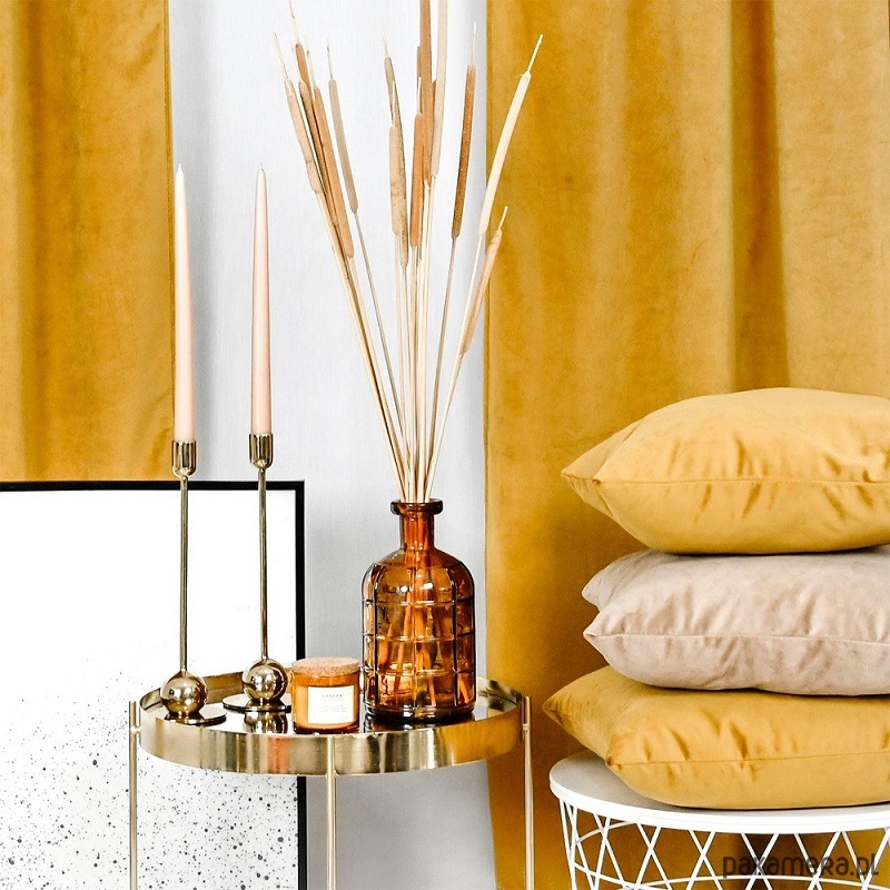 Piękna, miękka w dotyku zasłona w złocistym kolorze musztardowym. Idealnie sprawdzi się w sypialni, salonie lub jadalni.