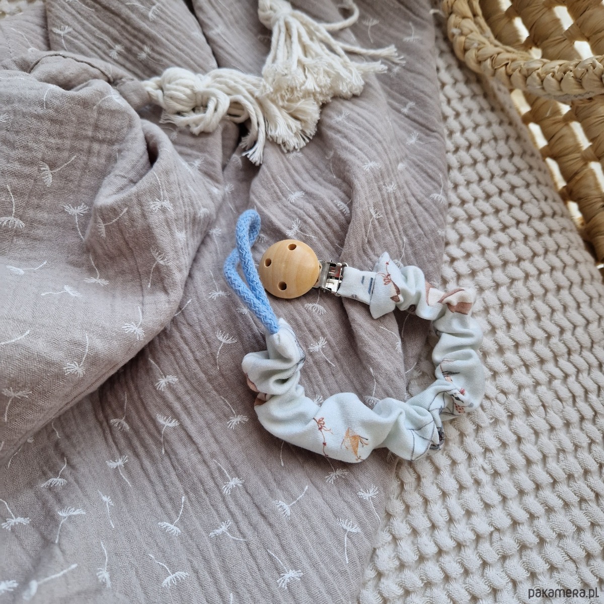 Zawieszka do smoczka wykonana jest z jerseyu. Nadaje się dla noworodków od pierwszych dni gdyż jest miękka oprócz zapinki nie posiada twardych elementów.