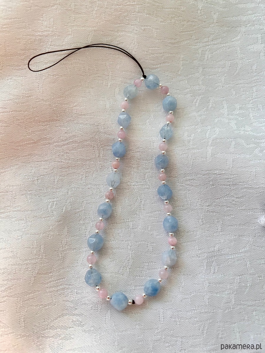 Odkryj harmonię ukrytą w kamieniach naturalnych. Ta subtelna, pastelowa zawieszka to idealne połączenie akwamarynu, angelitu i hematytu, które nie tylko zdobi telefon, ale też wprowadza do Twojego dnia nutę odprężenia i balansu.