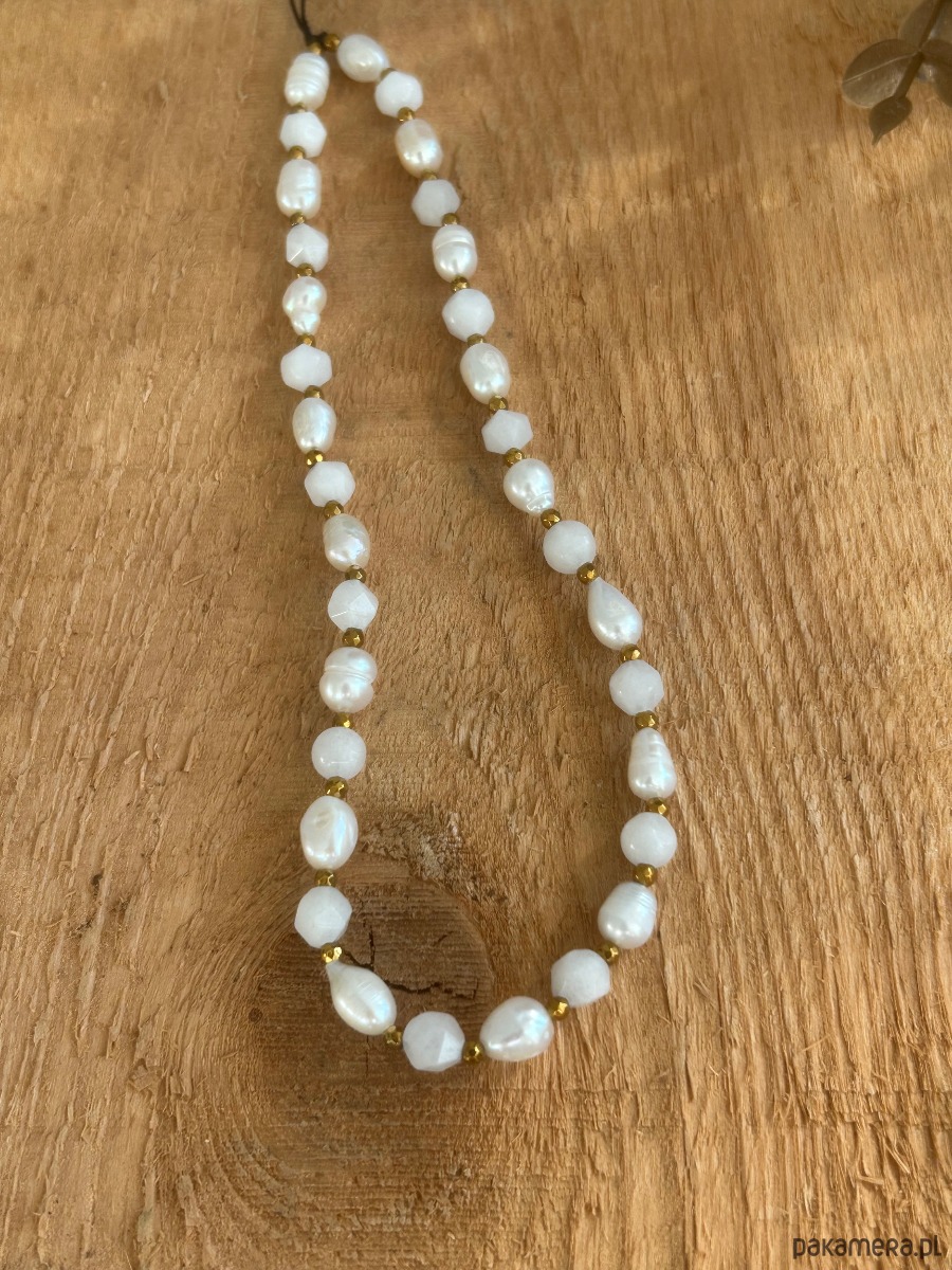 zawieszka ręcznie wykonana z kamieniami: Kamieniem księżycowym i perłami hodowlanymi
