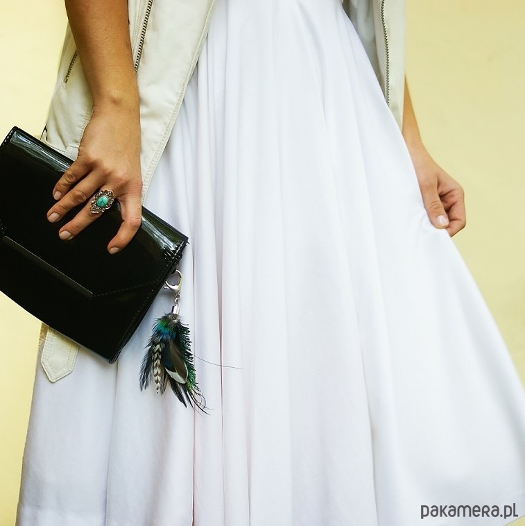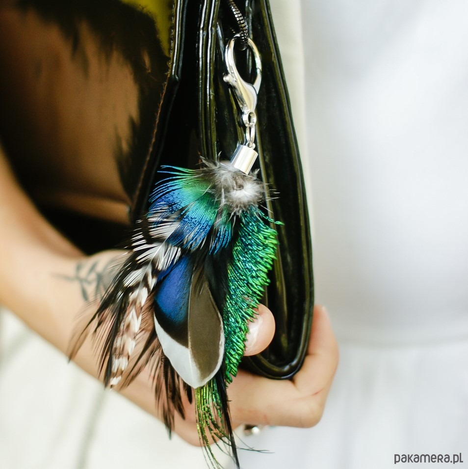 Mimo pozornej delikatności piór wykonana z nich zawieszka jest niezwykle trwała i wytrzymała. Wygodne zapięcie sprawia, że można dowolnie przepinać go do różnych torebek.