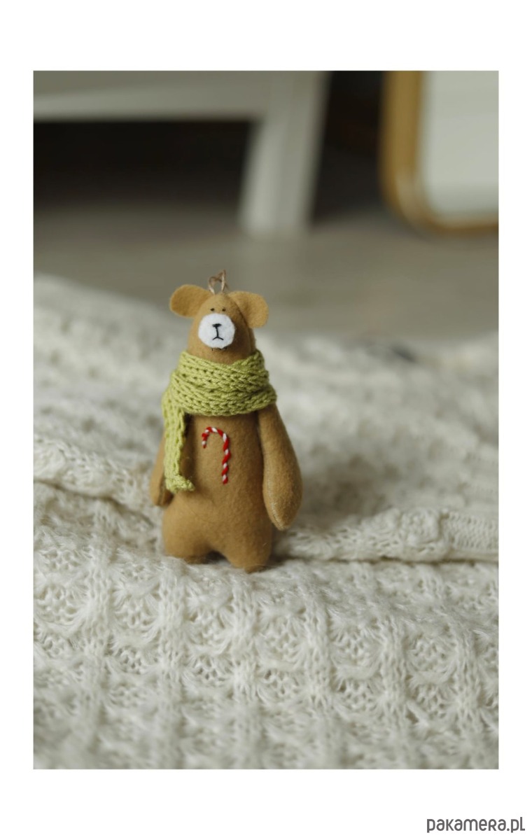 Zawieszka miś w szaliku, na choinkę/ do torebki