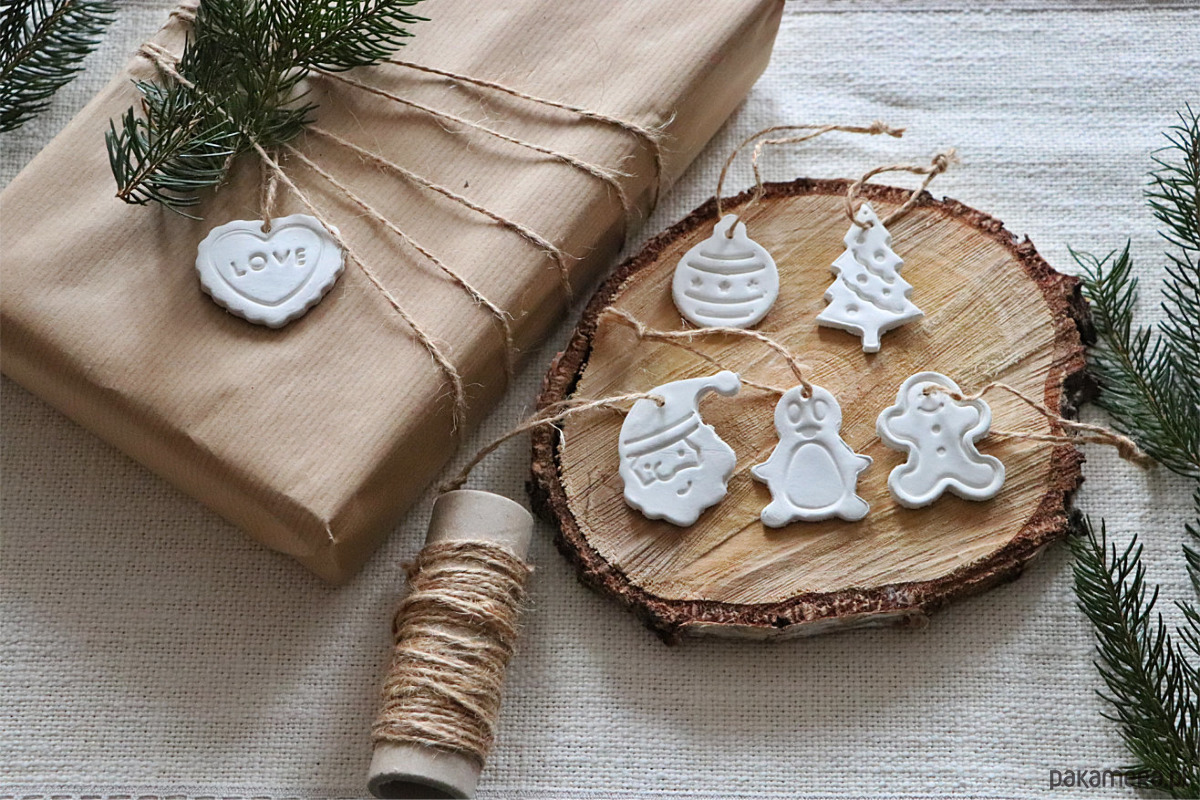 Niestandardowa zawieszka idealna do dekoracji prezentów bożonarodzeniowych lub jako ozdoba choinkowa.