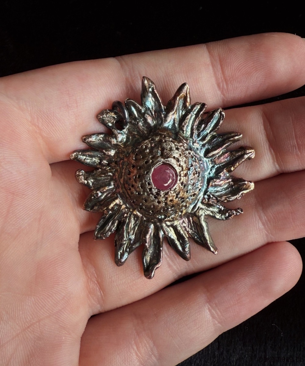 A pendant made of the highest quality Art Clay Silver 999 with ruby.