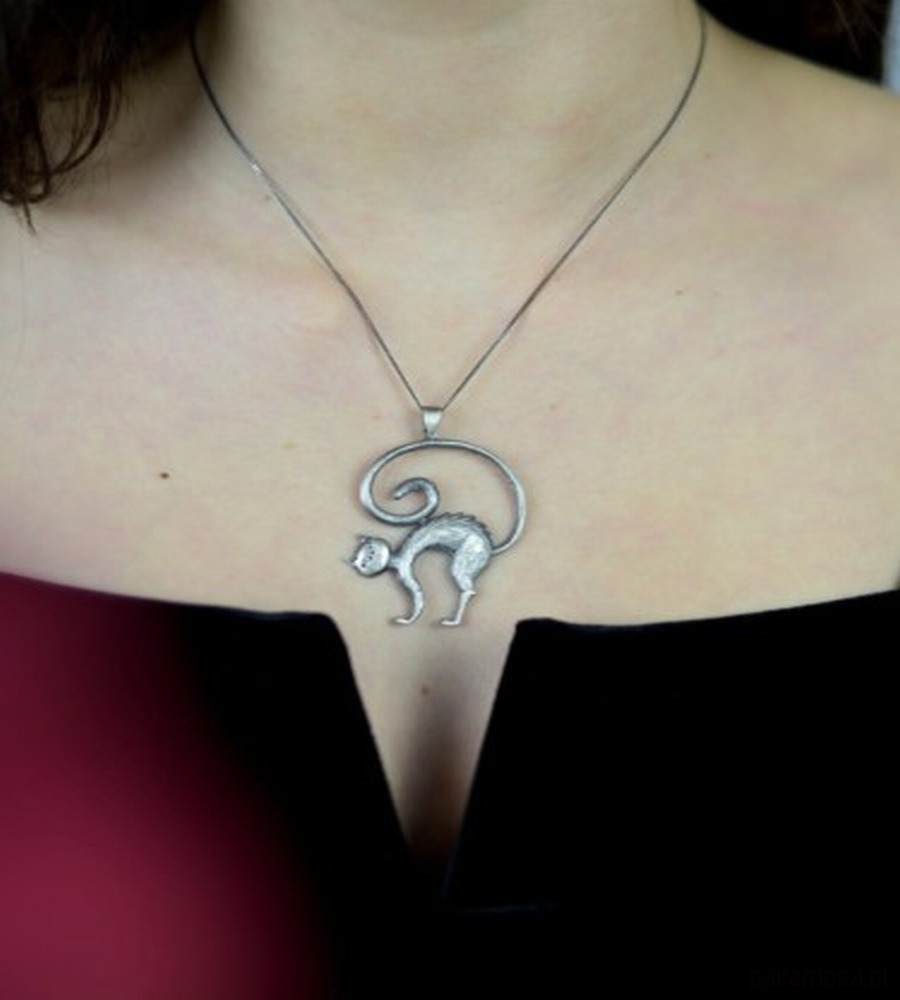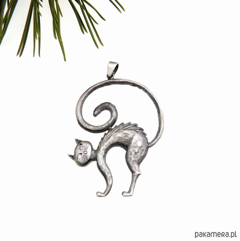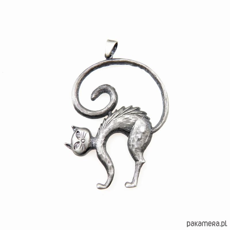 Zawieszka srebrna- Kot Teofil szary